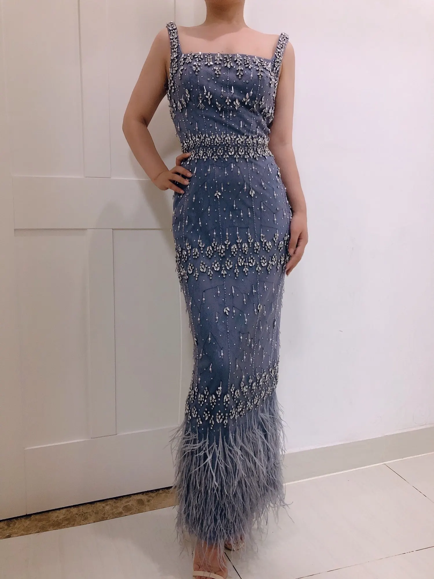 Robes de bal champagne à manches longues robe formelle scintillante des années 20 FD2494