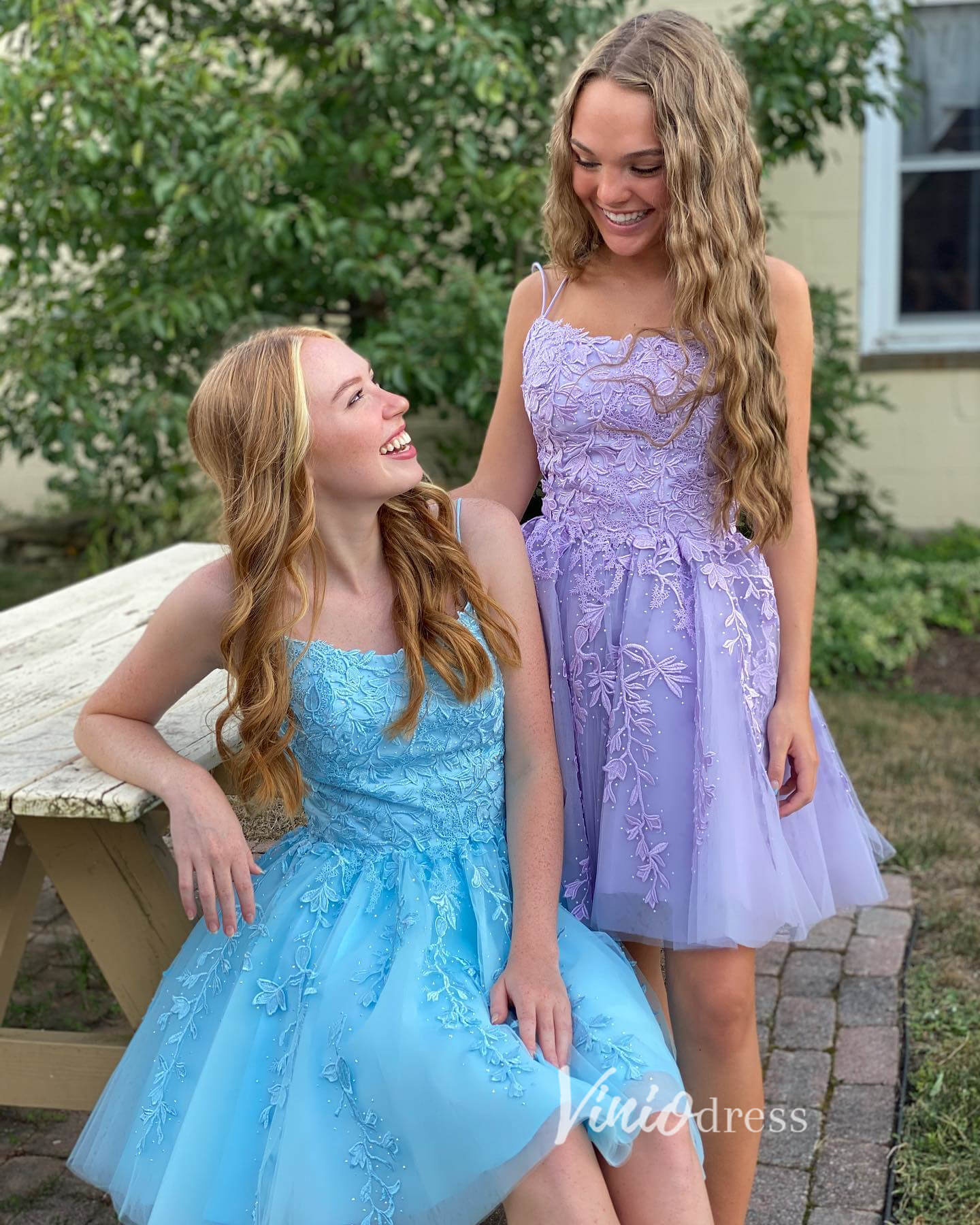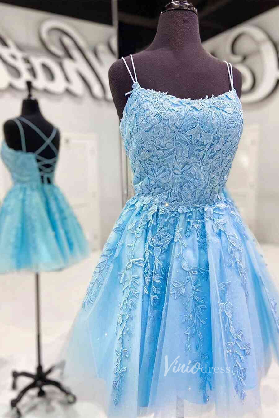 Robes de soirée en dentelle bleu clair à bretelles spaghetti SD1177S