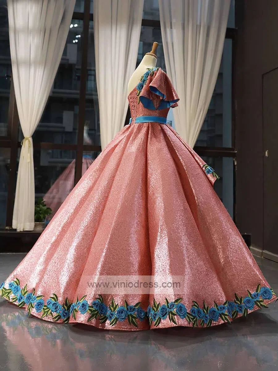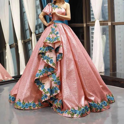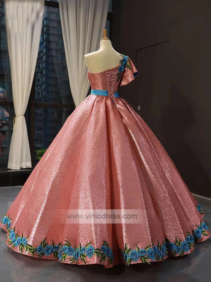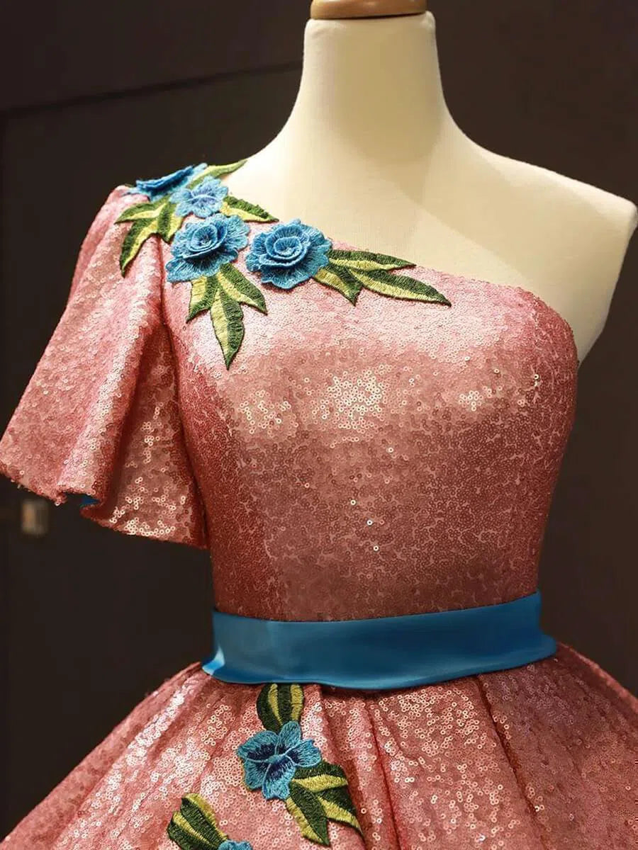 Robes de bal longues roses à une épaule. Robe de bal brodée robe sweet 15.