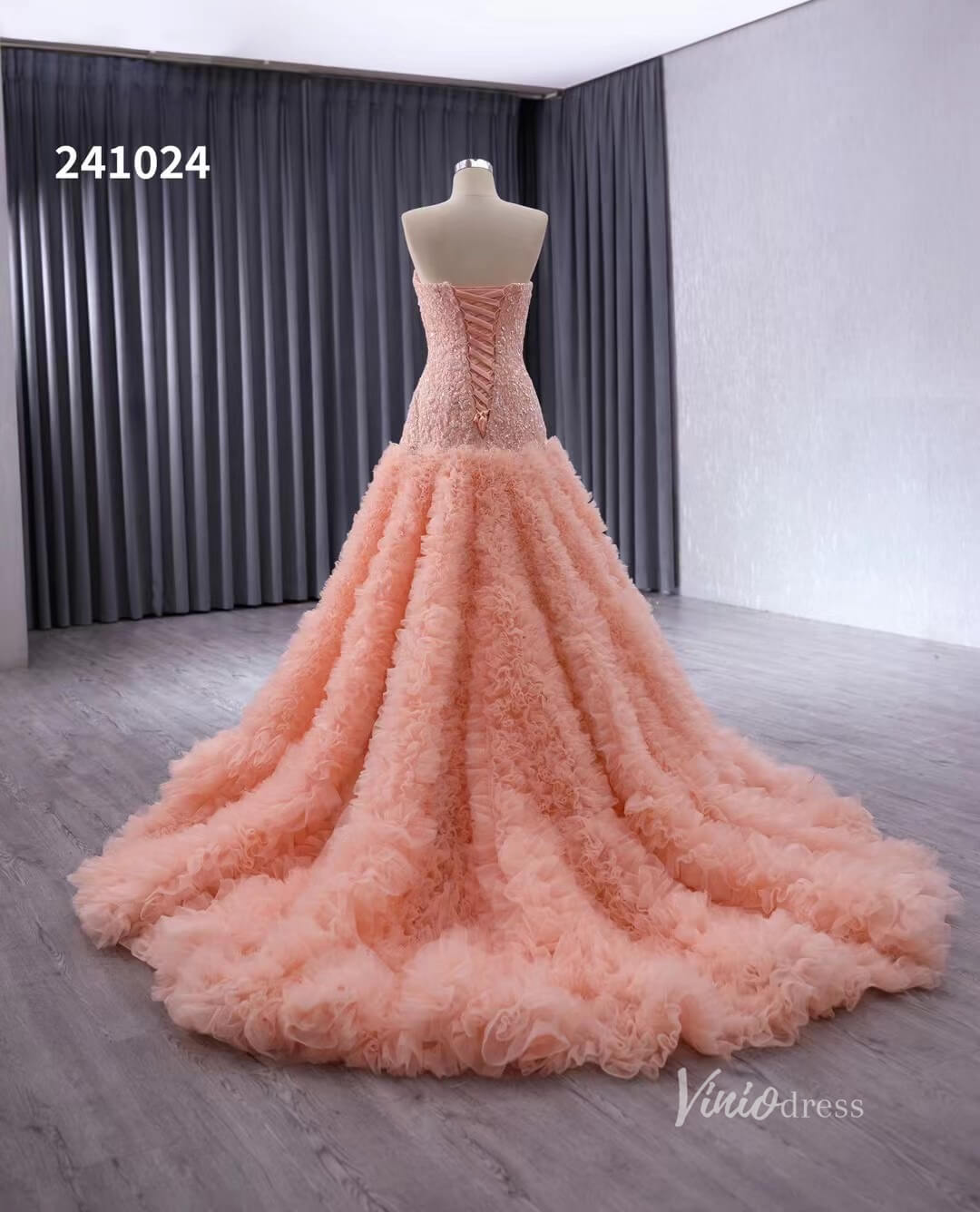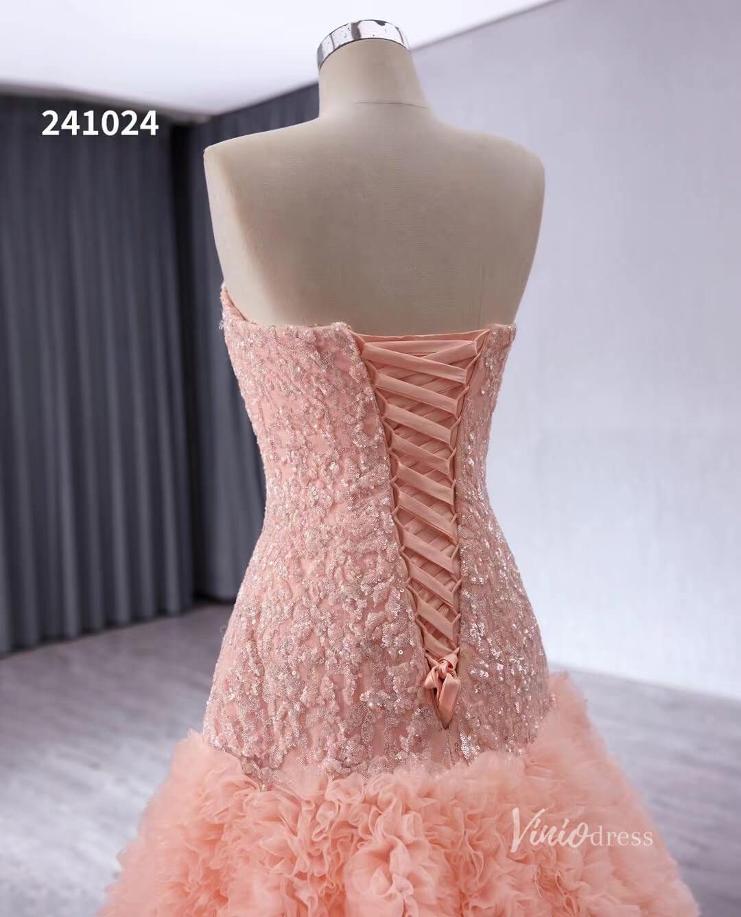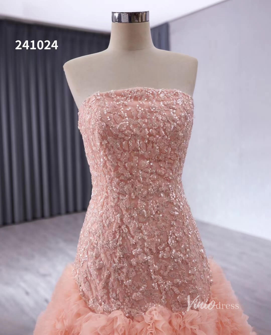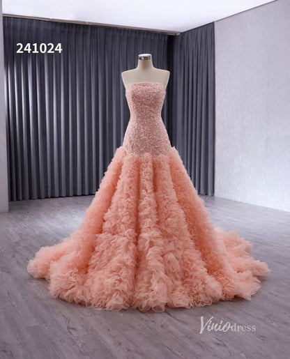 Pink Beaded Ruffled Wedding Dresses Strapless Quinceanera Dress 241024