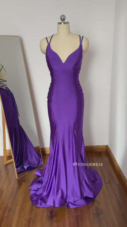 Robe de bal fourreau violette, robe de soirée à lacets dans le dos, fente haute, FD2709