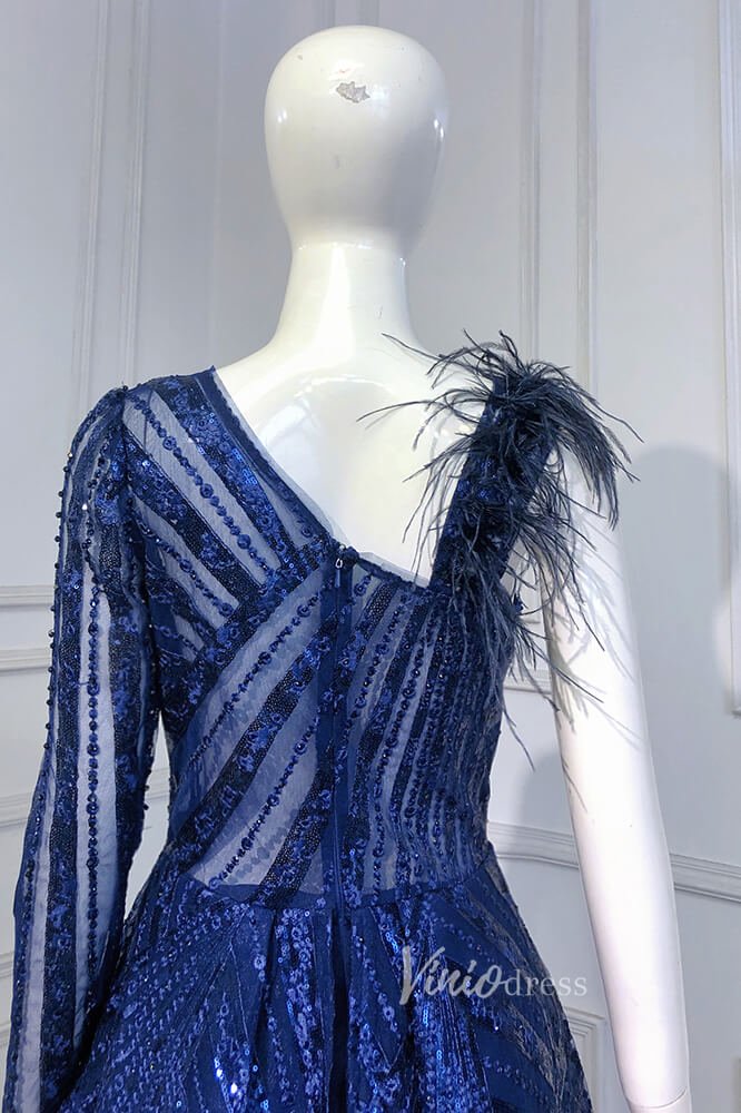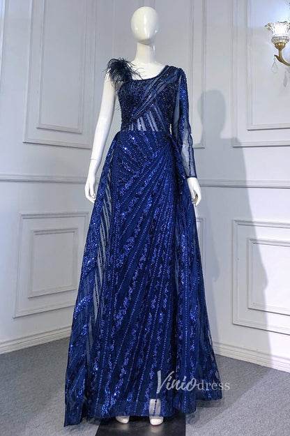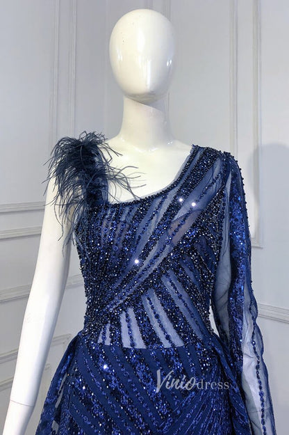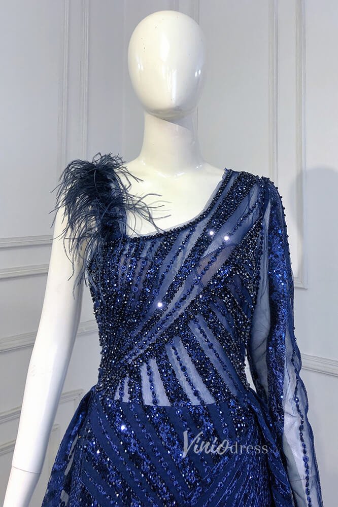 Robes de soirée perlées bleu royal robe de bal asymétrique épaule dénudée FD3019