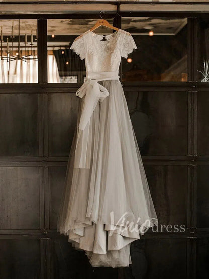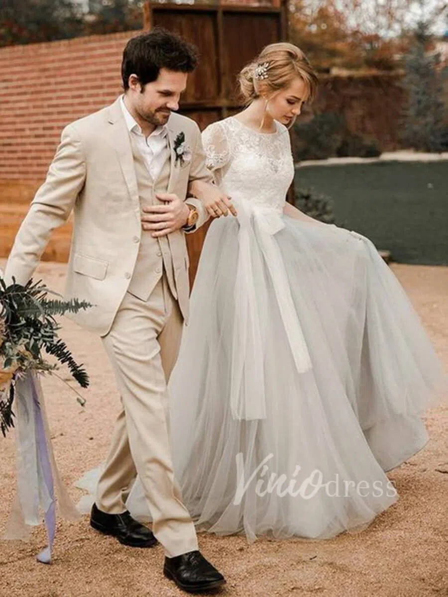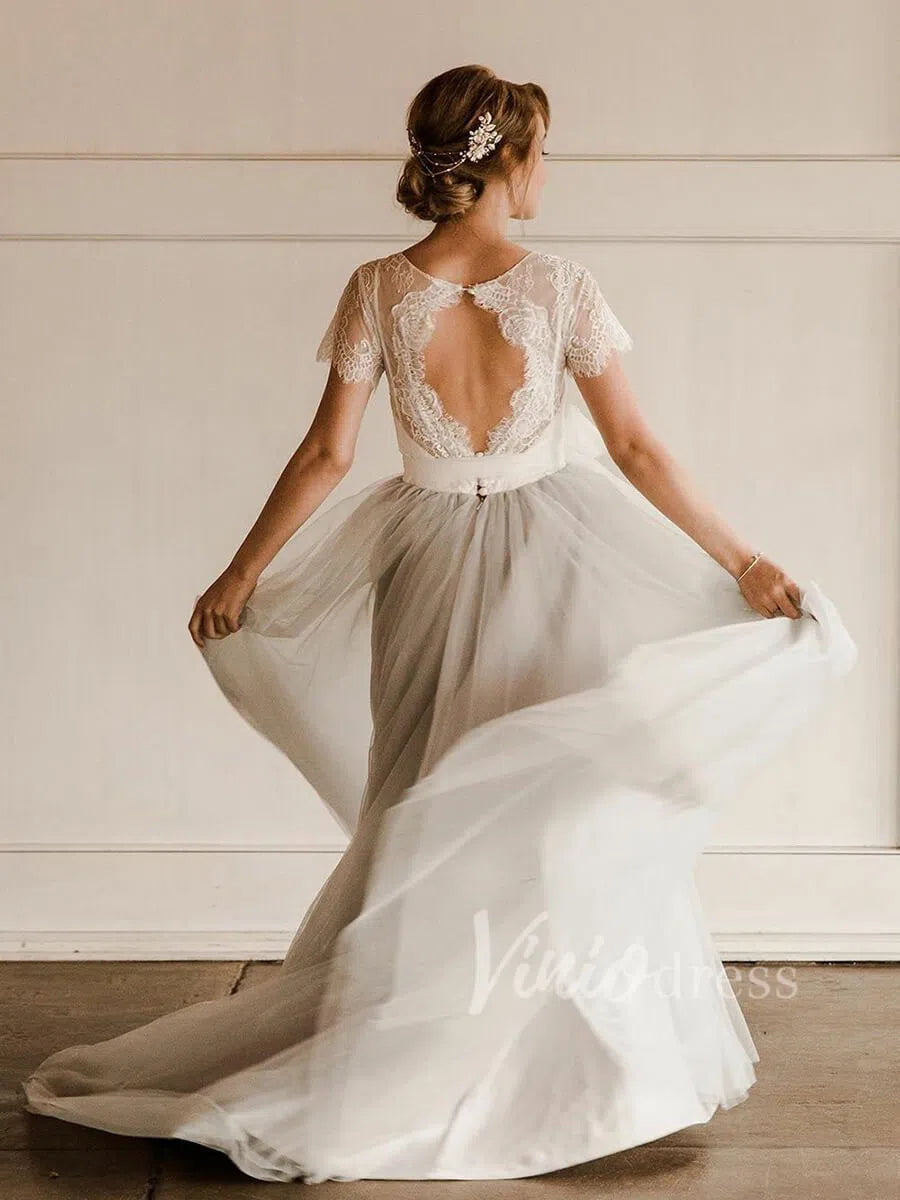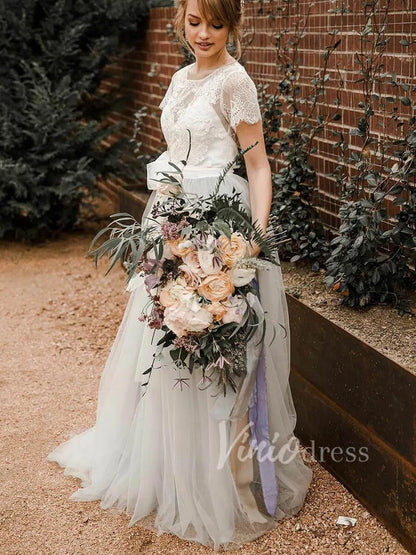 Robes de mariée de campagne argentées à manches courtes, dos ouvert VW1270