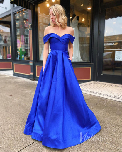 Robes de bal simples en Satin bleu royal, épaules dénudées, FD2853