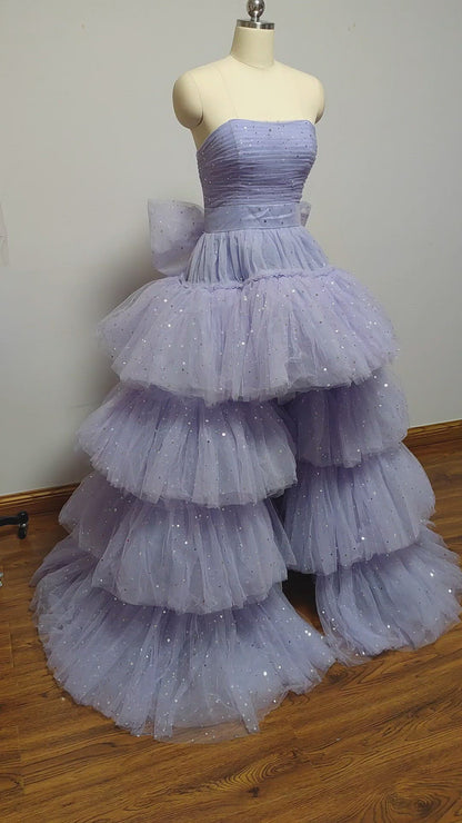 Robe de bal sans bretelles, haute et basse, robe étoilée lavande, FD1553