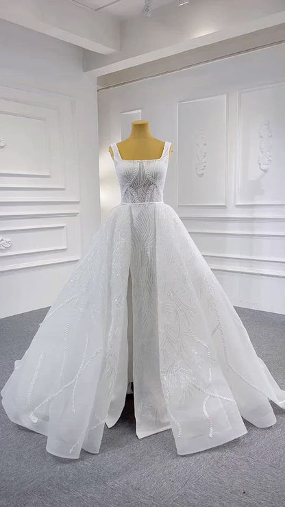 Robes de mariée en dentelle scintillante à col carré avec fente VW1891