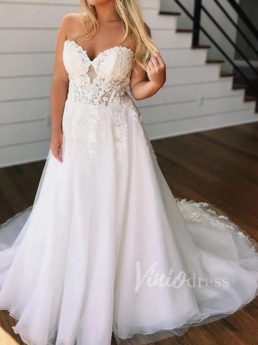 Robes de mariée de plage avec corsage en dentelle sans bretelles 2019 VW1253