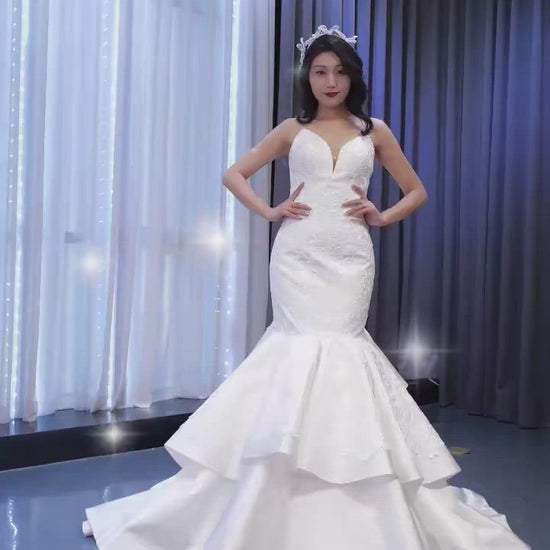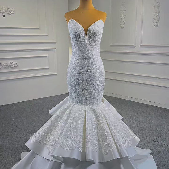 Robes de mariée sirène sans bretelles robe trompette appliquée en dentelle 67471