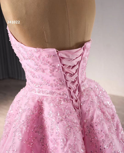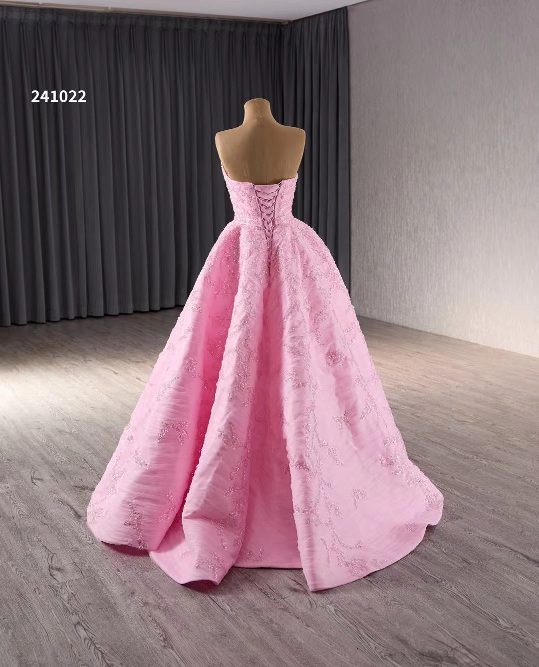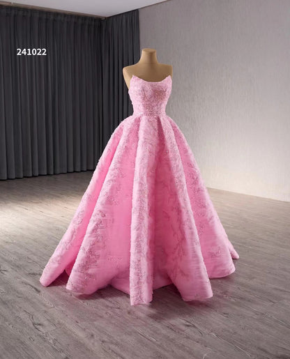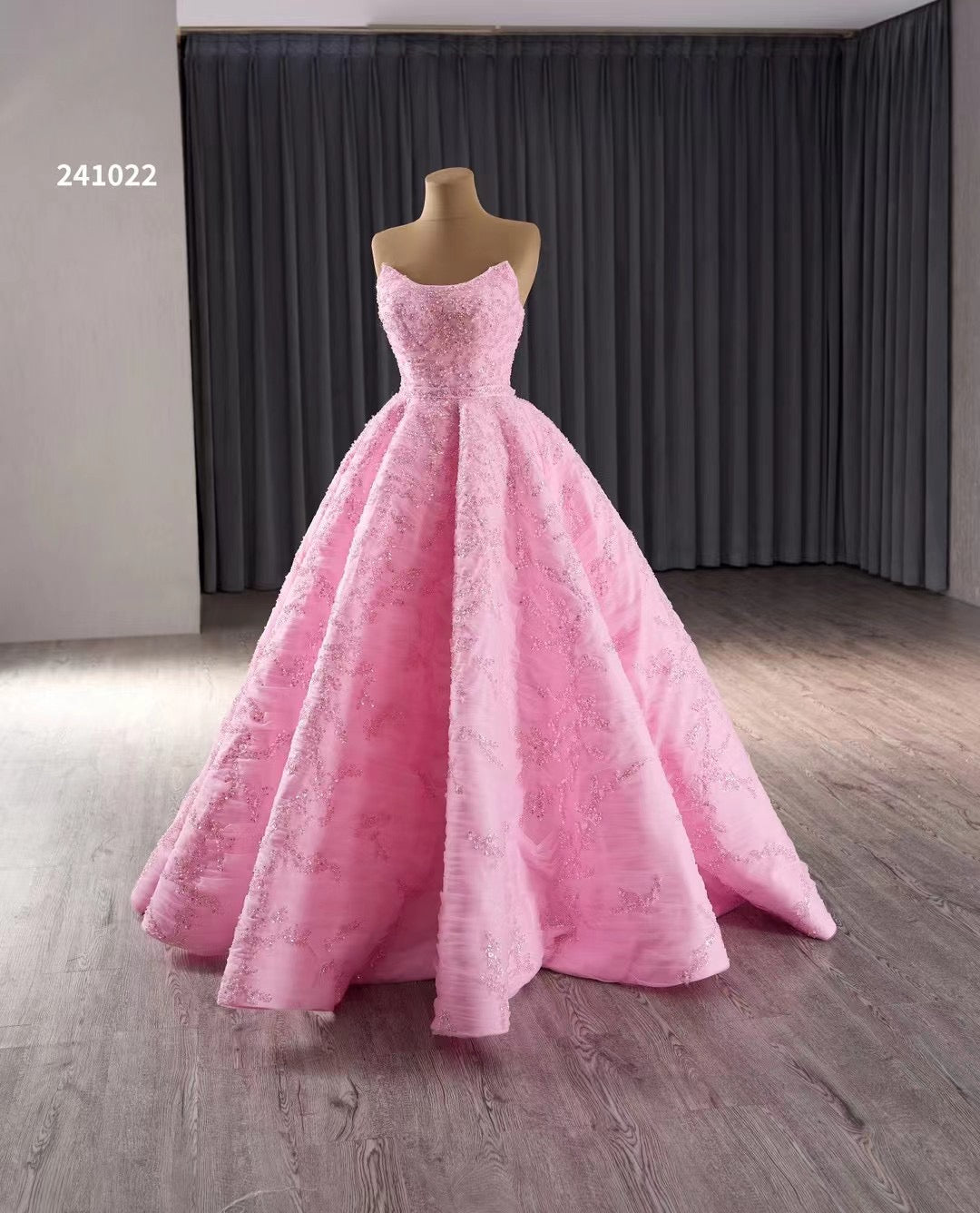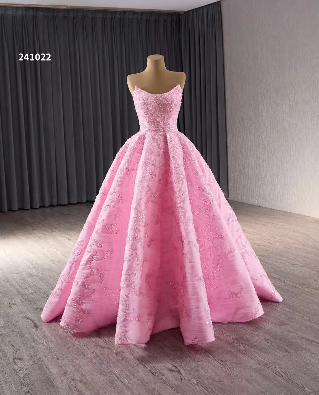 Strapless Pink Ball Gown Prom Dresses Beaded Wedding Gown 241022