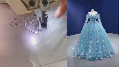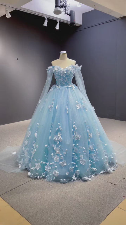 Elevate your little one's quinceañera look with our 3D Flower Quince Dresses! The stunning 3D flowers and princess ball gown style exude a regal charm, while the included cape hoodie adds a modern twist. Perfect for the modern princess, this dress will make her stand out on her special day.