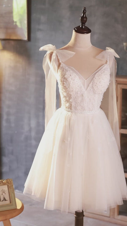 Backless Tulle Homecoming Dresses V-neck Short Graduation Dress SD1456
