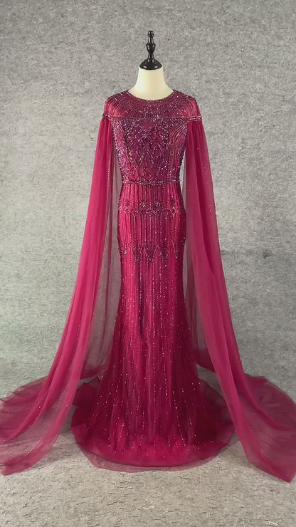 Beaded Cape Sleeve Evening Gowns Mother of the Bride Dresses 20063