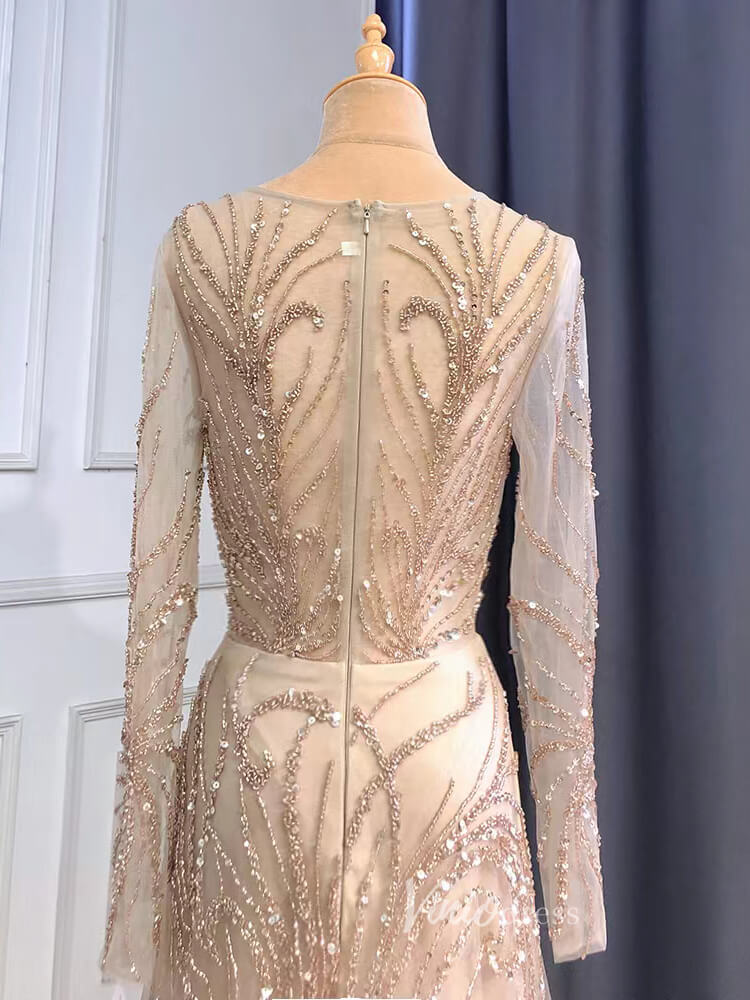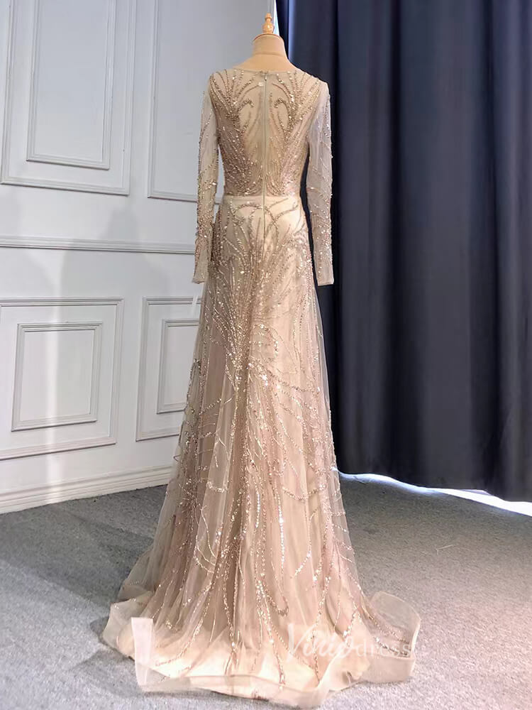Beaded Champagne Prom Dresses Long Sleeve Evening Dress 20070