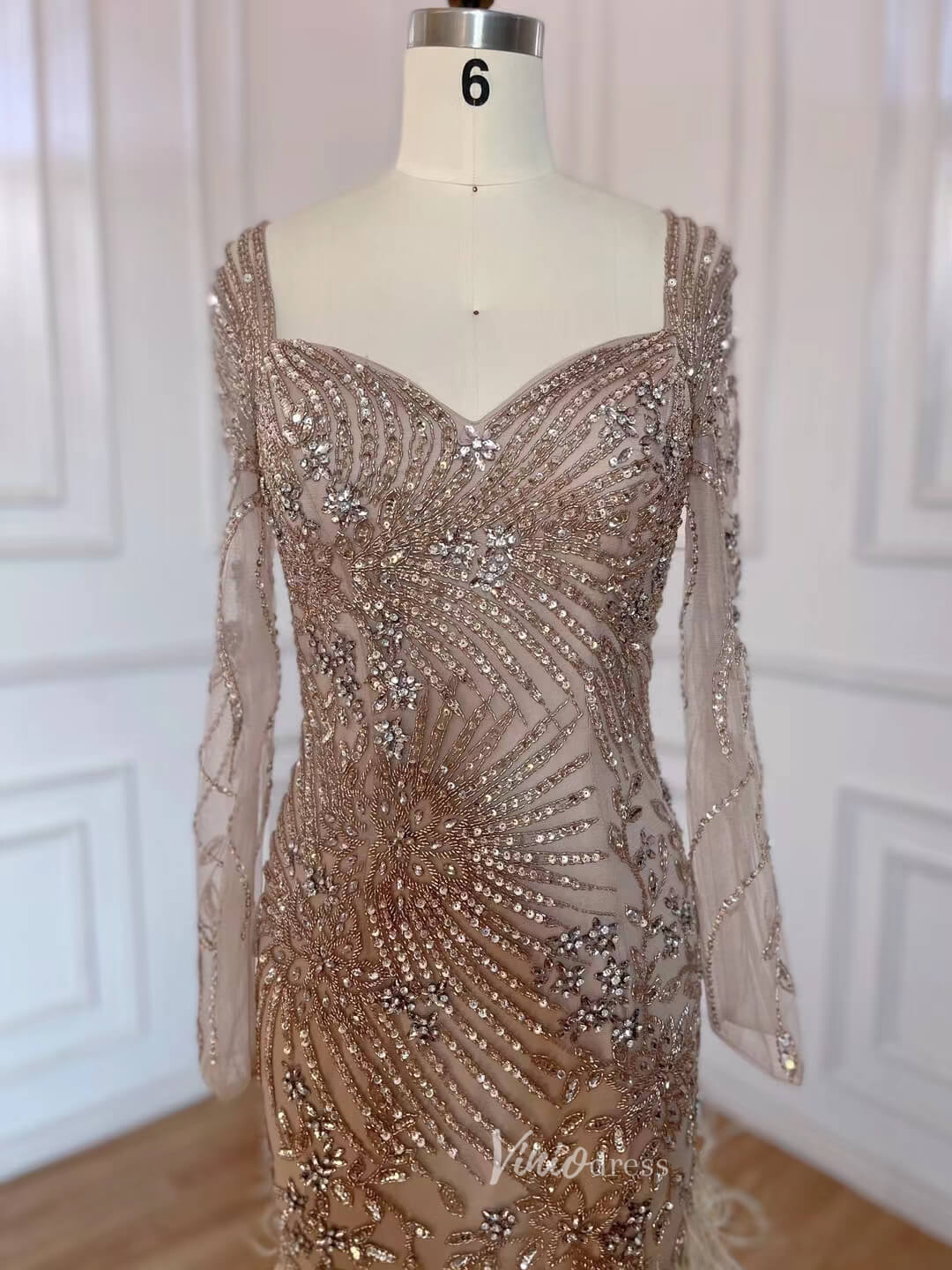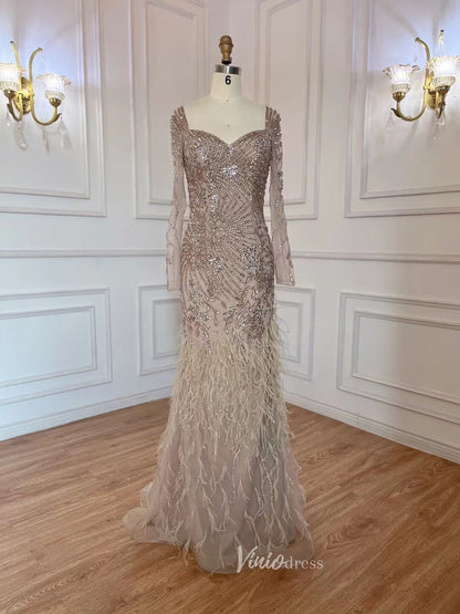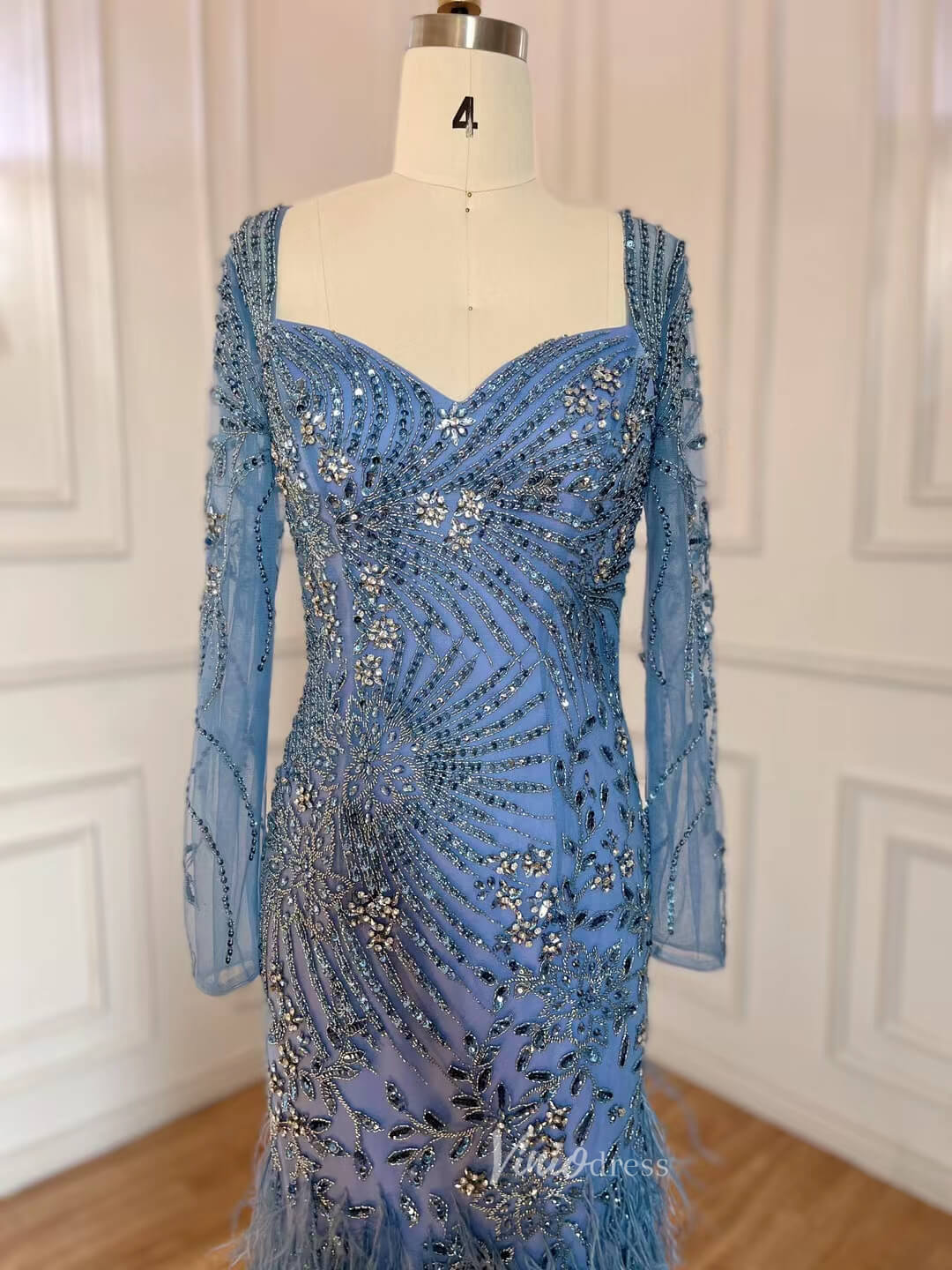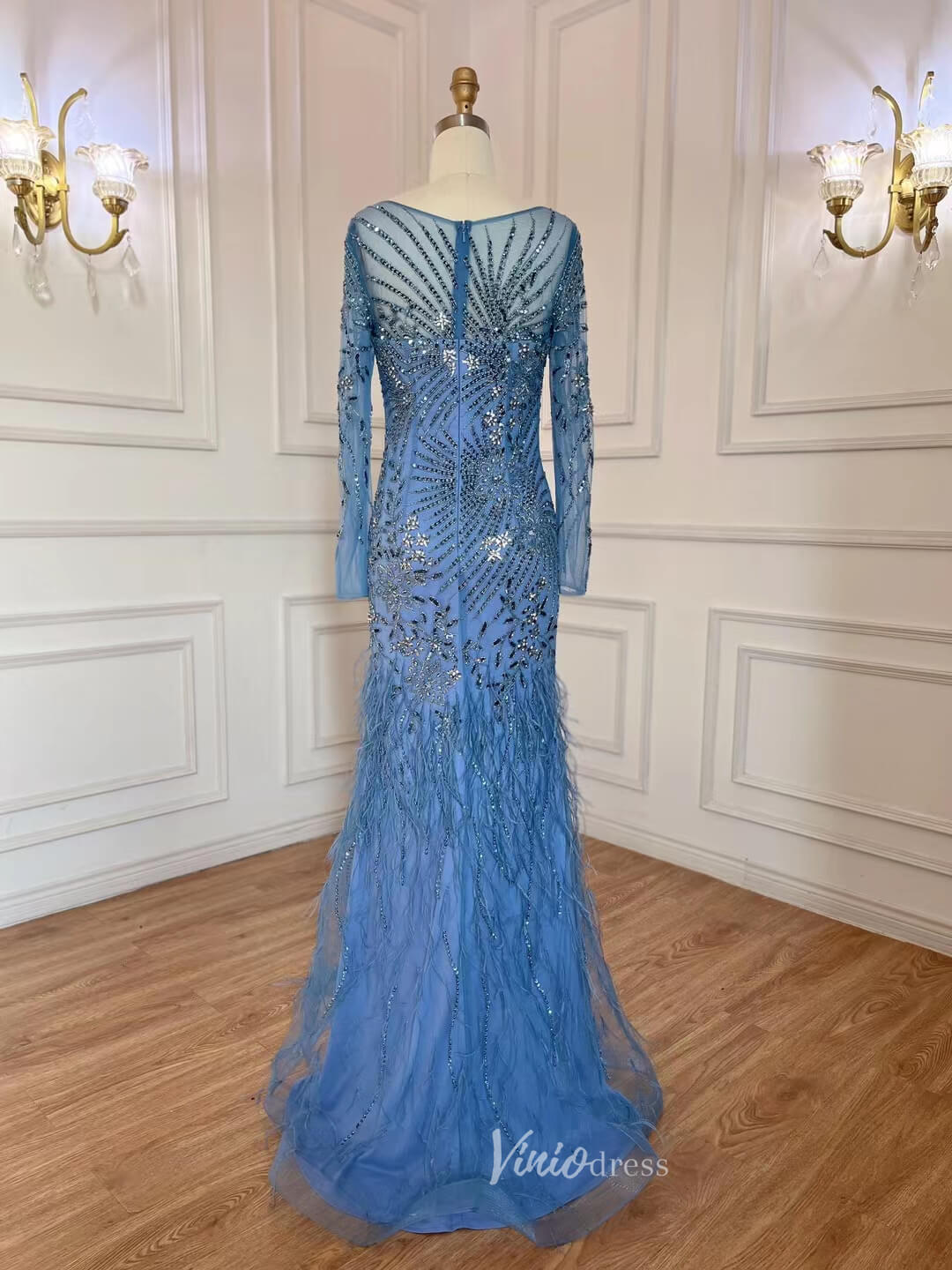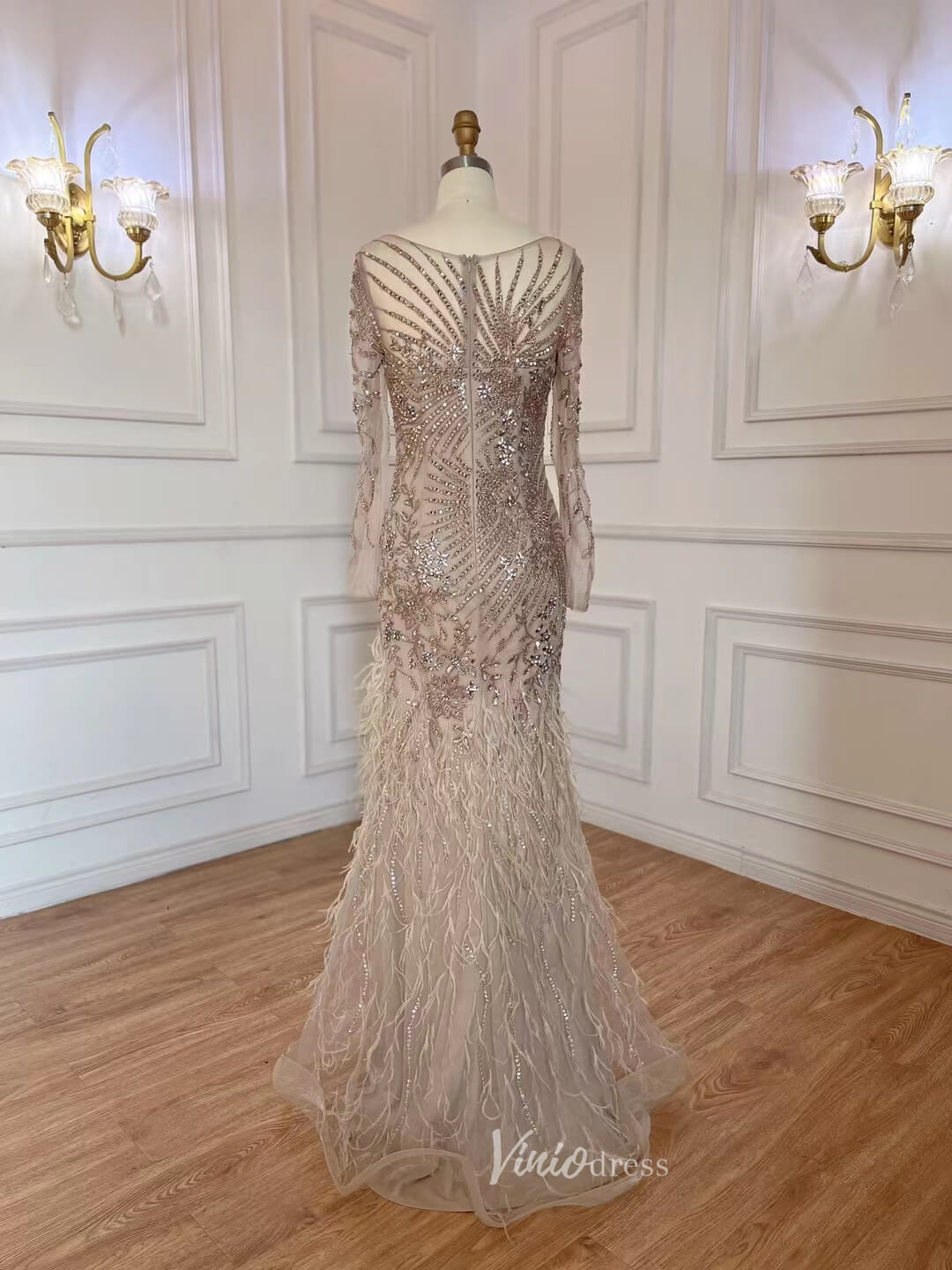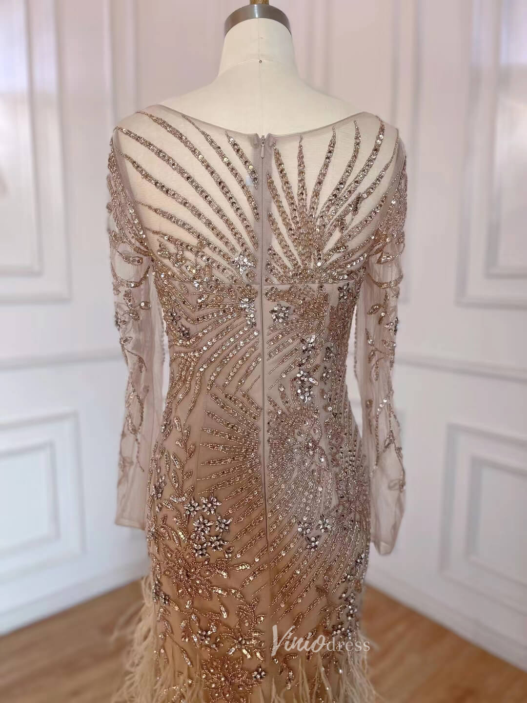 Beaded Feather 1920s Evening Dress Long Sleeve Prom Dresses 20061