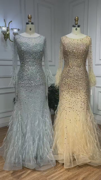 Beaded Feather 1920s Evening Dresses Long Sleeve Shimmer Prom Dress 20073