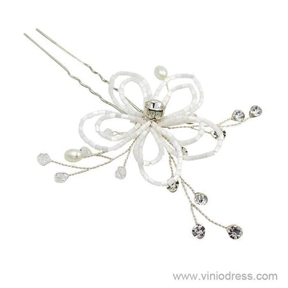 Beaded Floral Bridal Comb Silver Crystal Hairpin Viniodress ACC1131