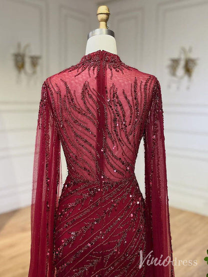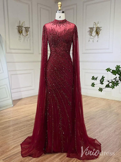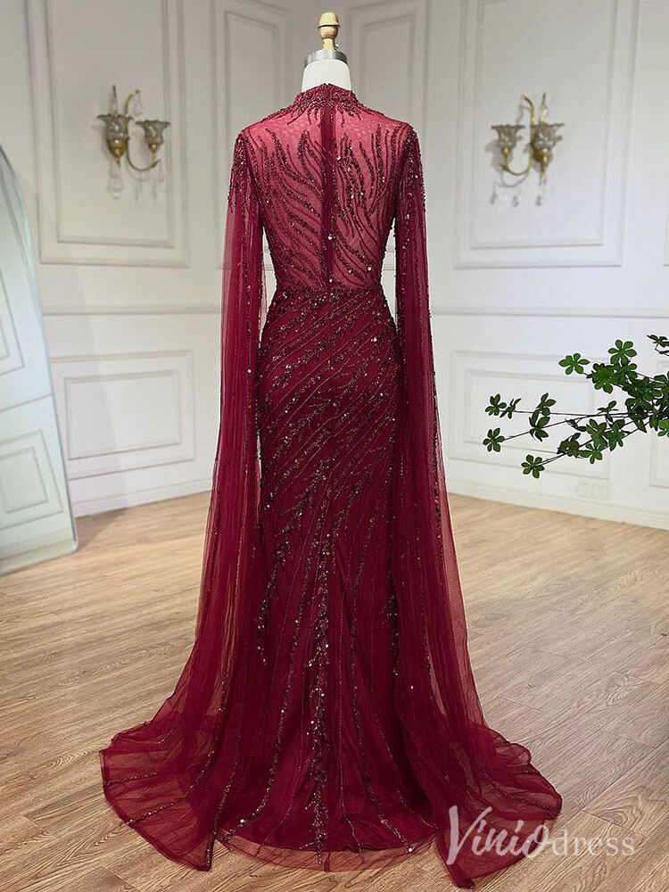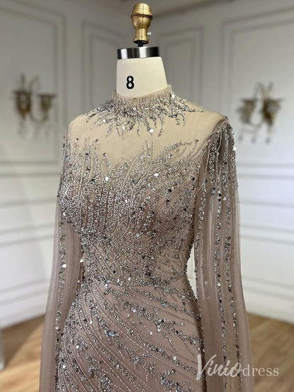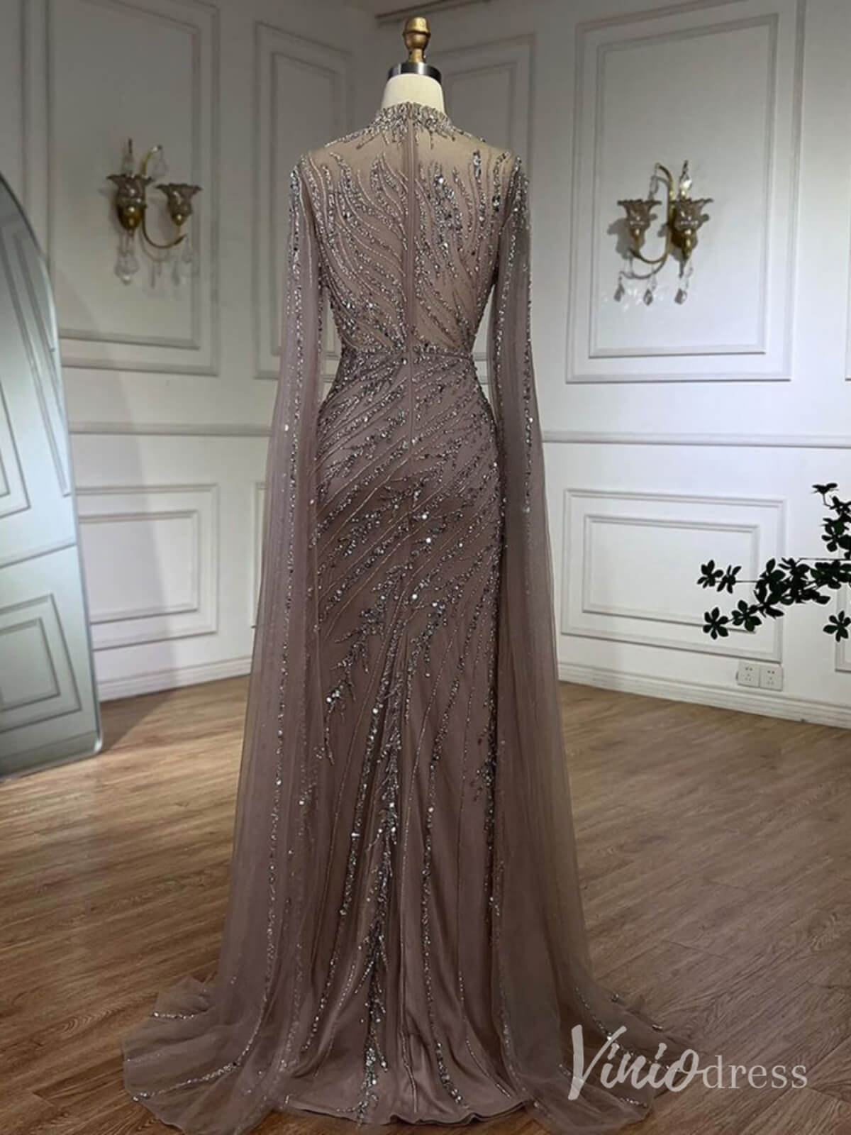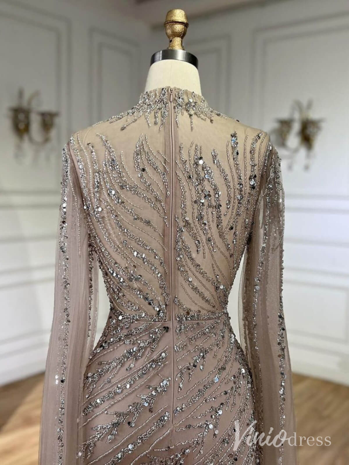 This beaded lace sheath dress features extra long sleeves and a high neck, adding elegance and sophistication to any special occasion. The intricate beading enhances the luxurious feel of this dress, making it perfect for mothers of the bride.