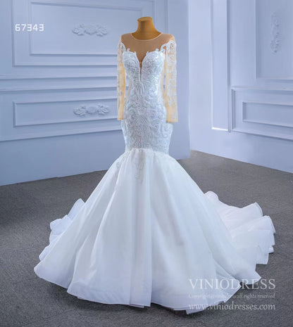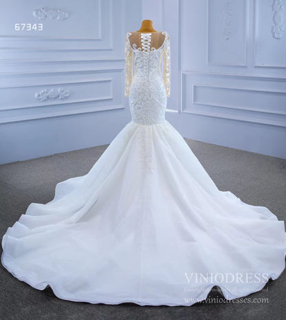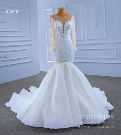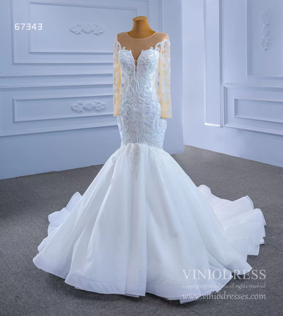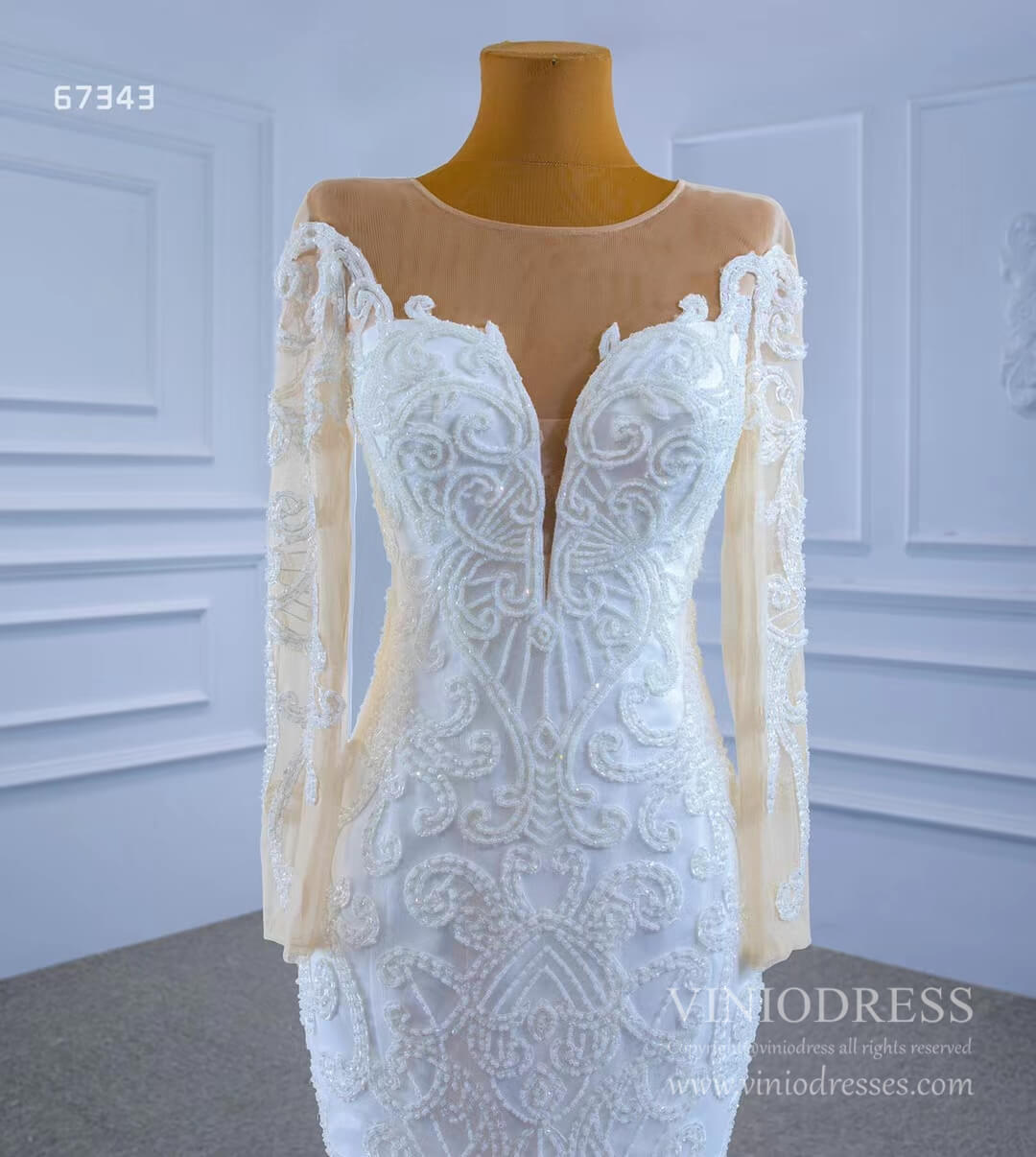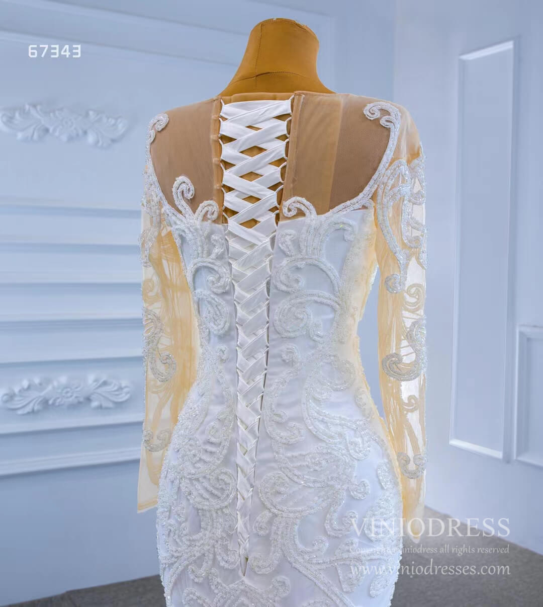Beaded Off White Mermaid Wedding Dresses with Sleeves 67343
