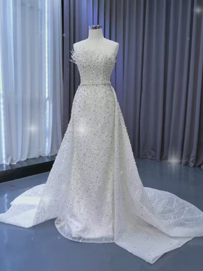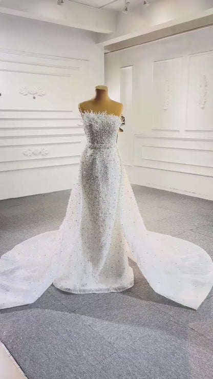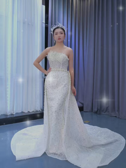Beaded Pearl Mermaid Wedding Dresses with Removable Overskirt 222205