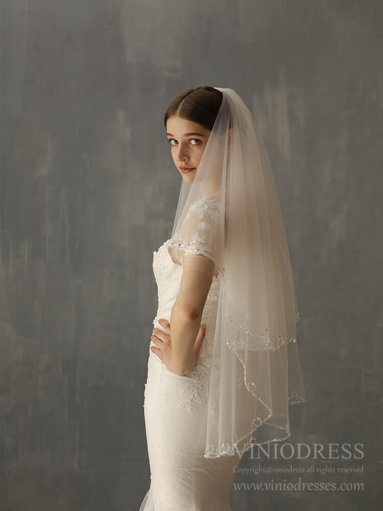 Beaded Short Blusher Veil Elegant Bridal Veils AC1244
