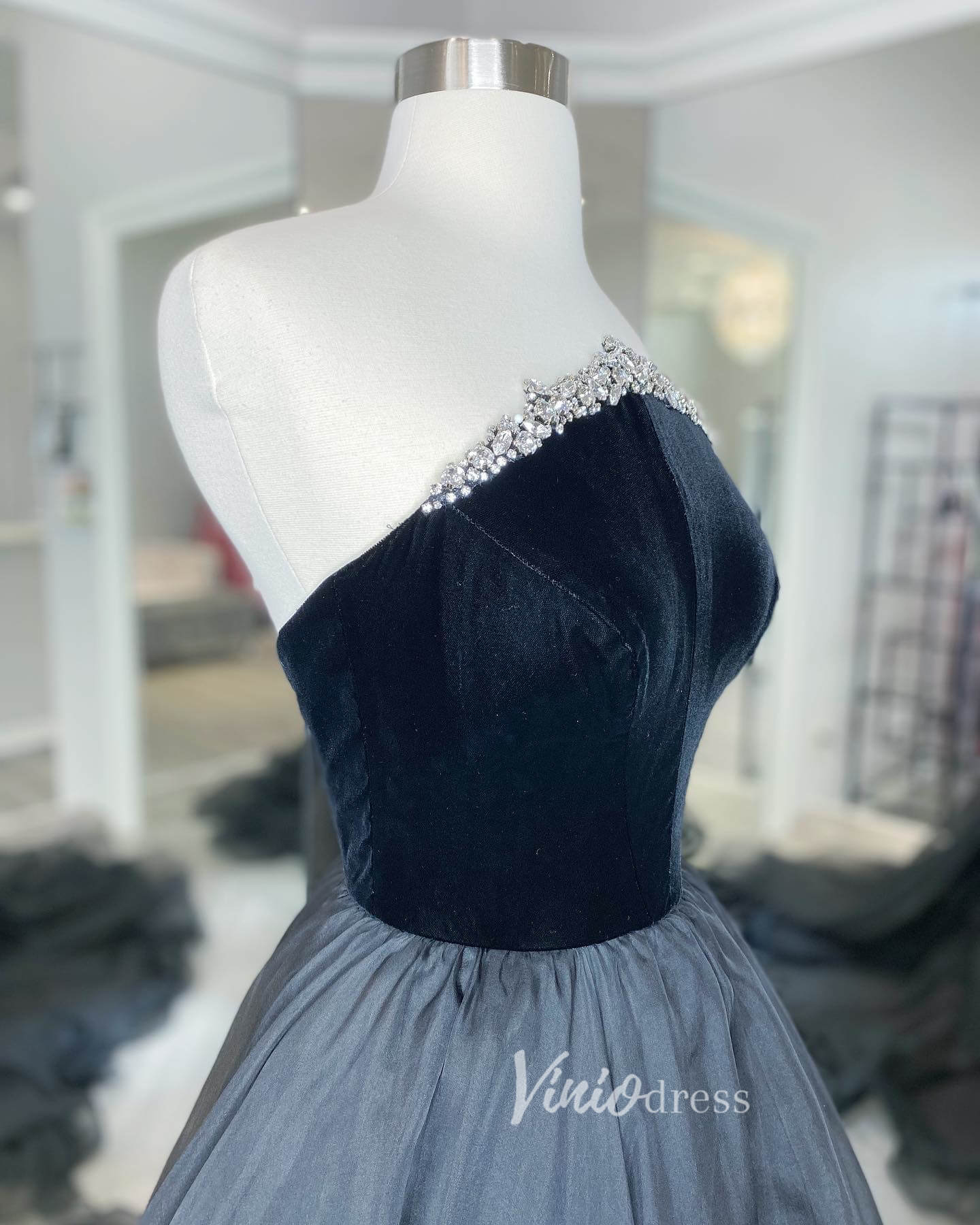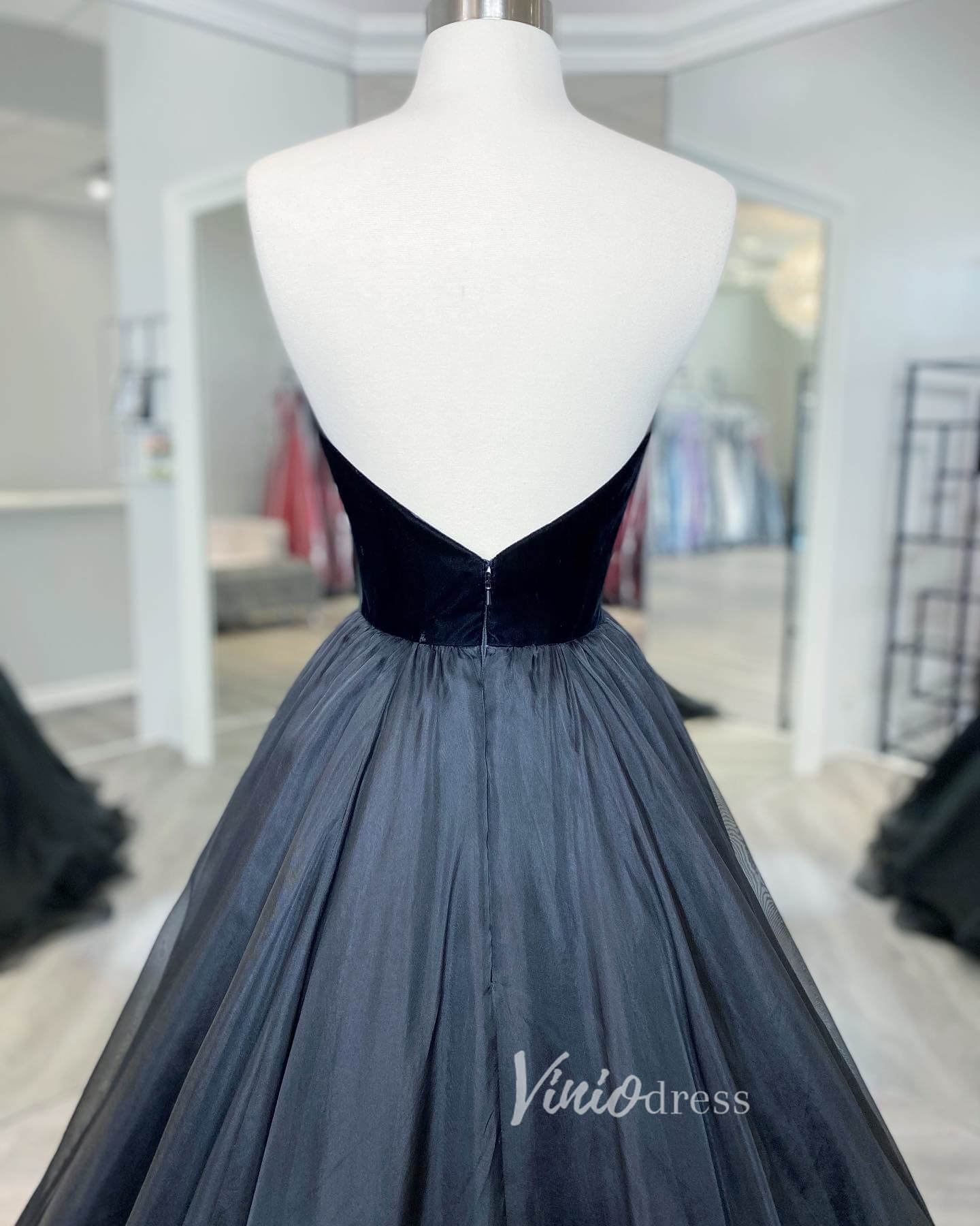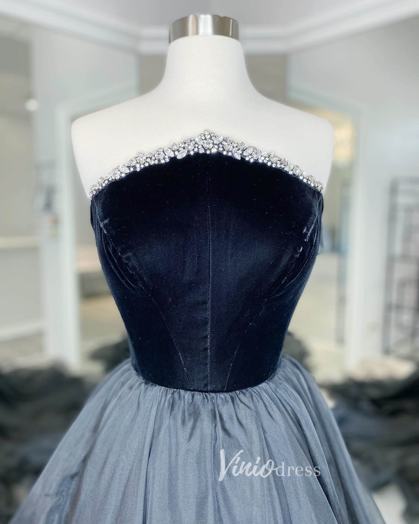 Black Strapless Prom Dresses A-Line Evening Dress FD3138