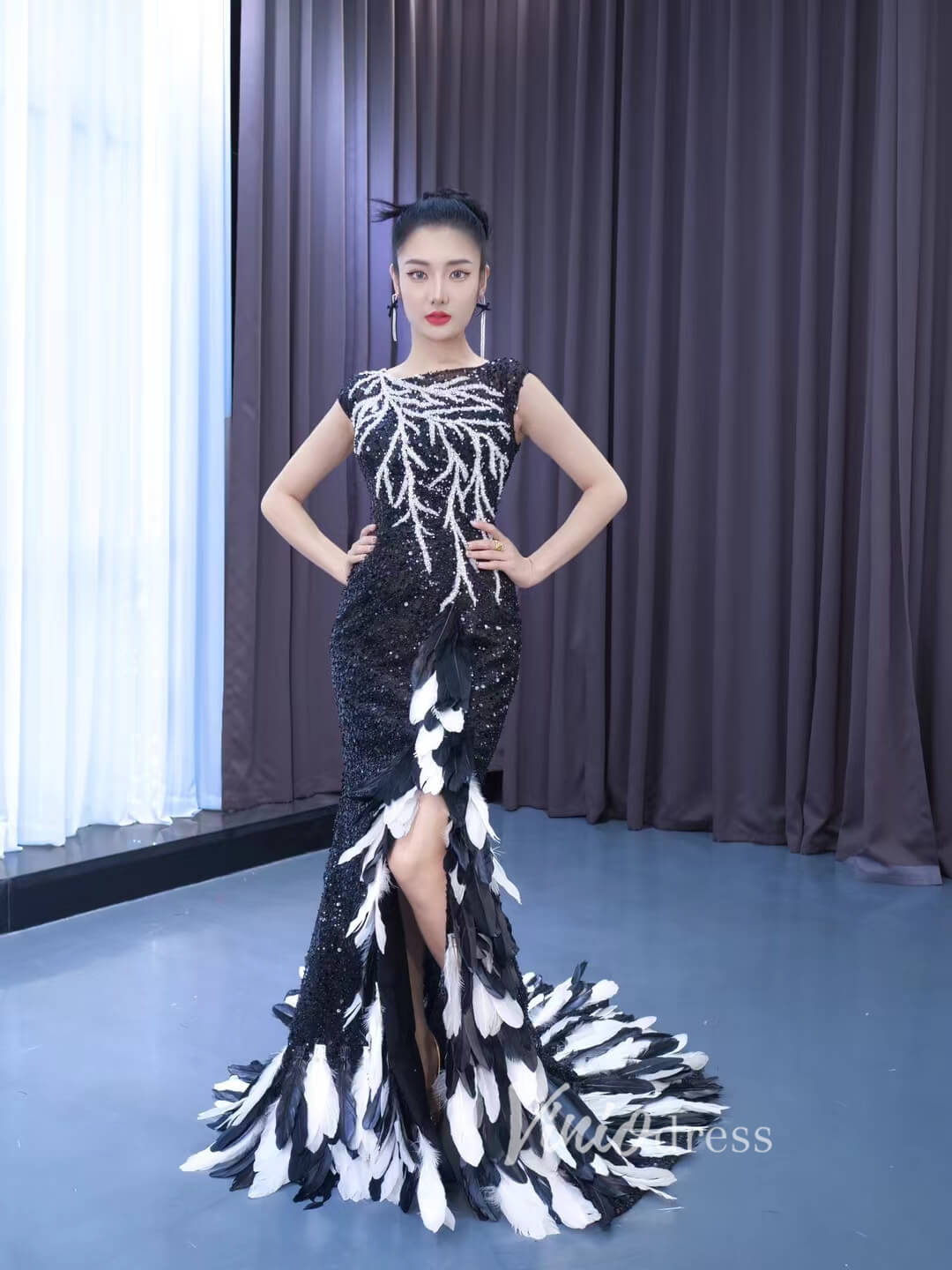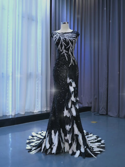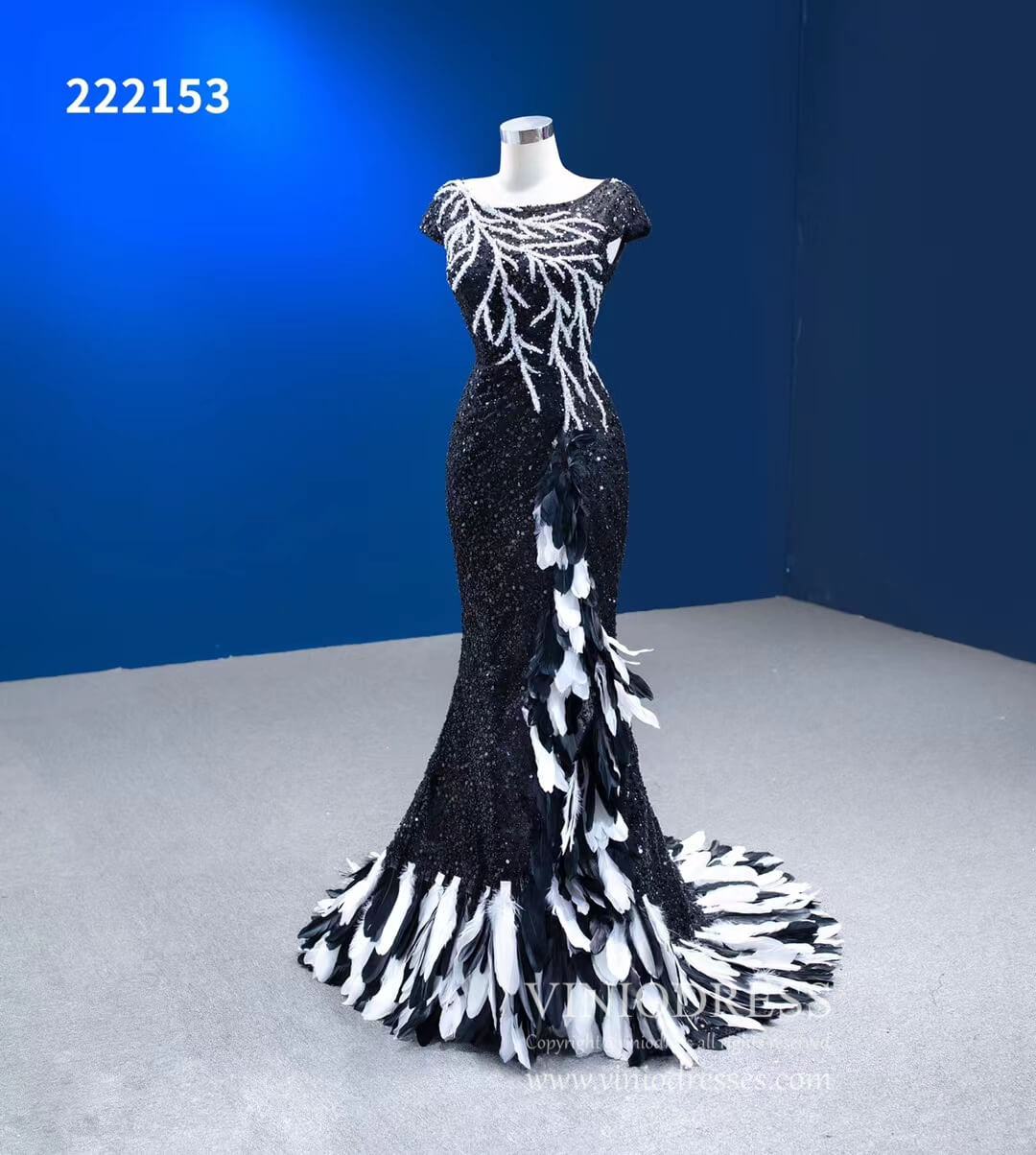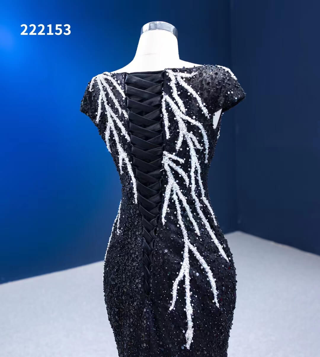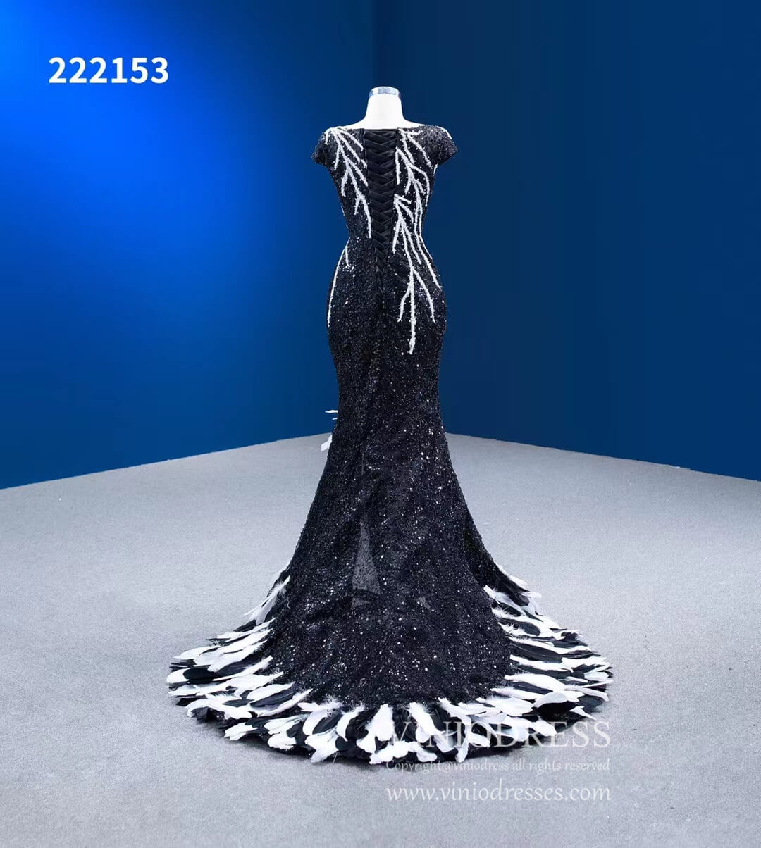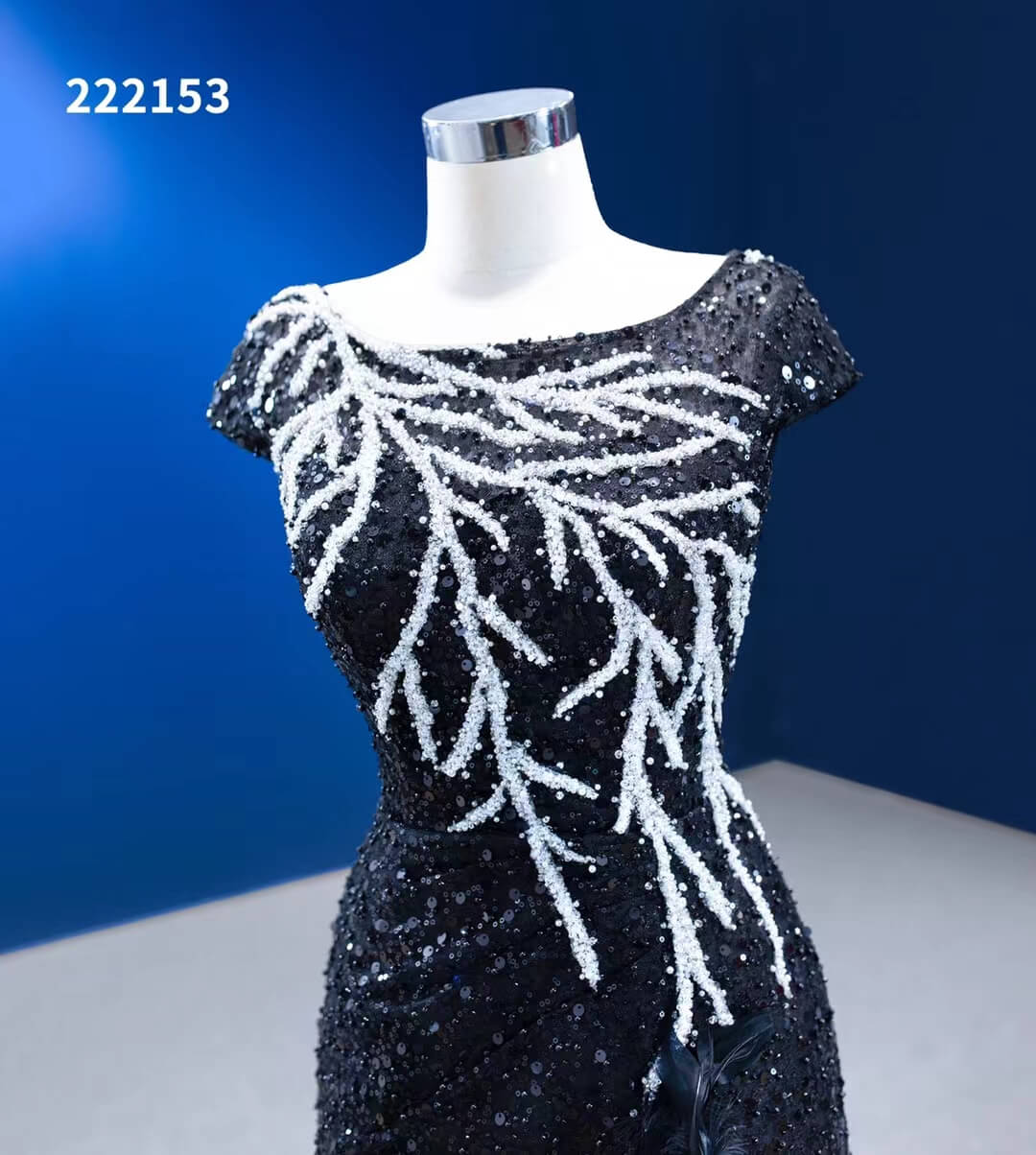 Black & White Evening Dresses Beaded Pageant Dress Cap Sleeve 222153