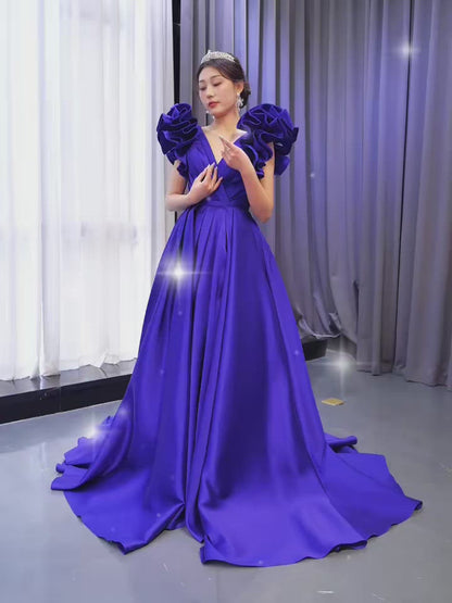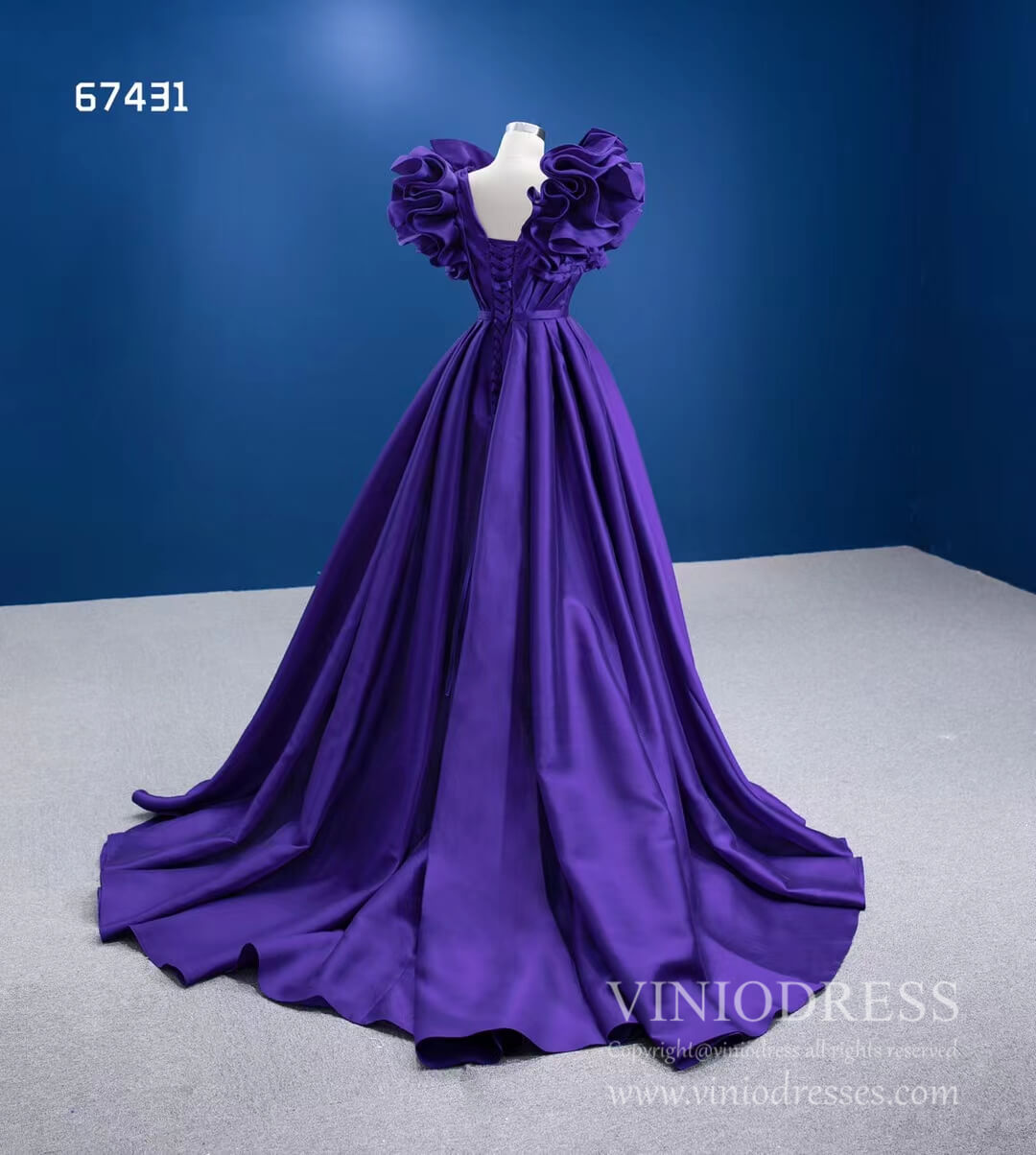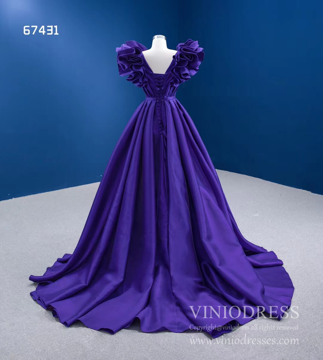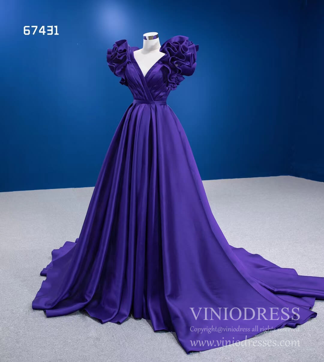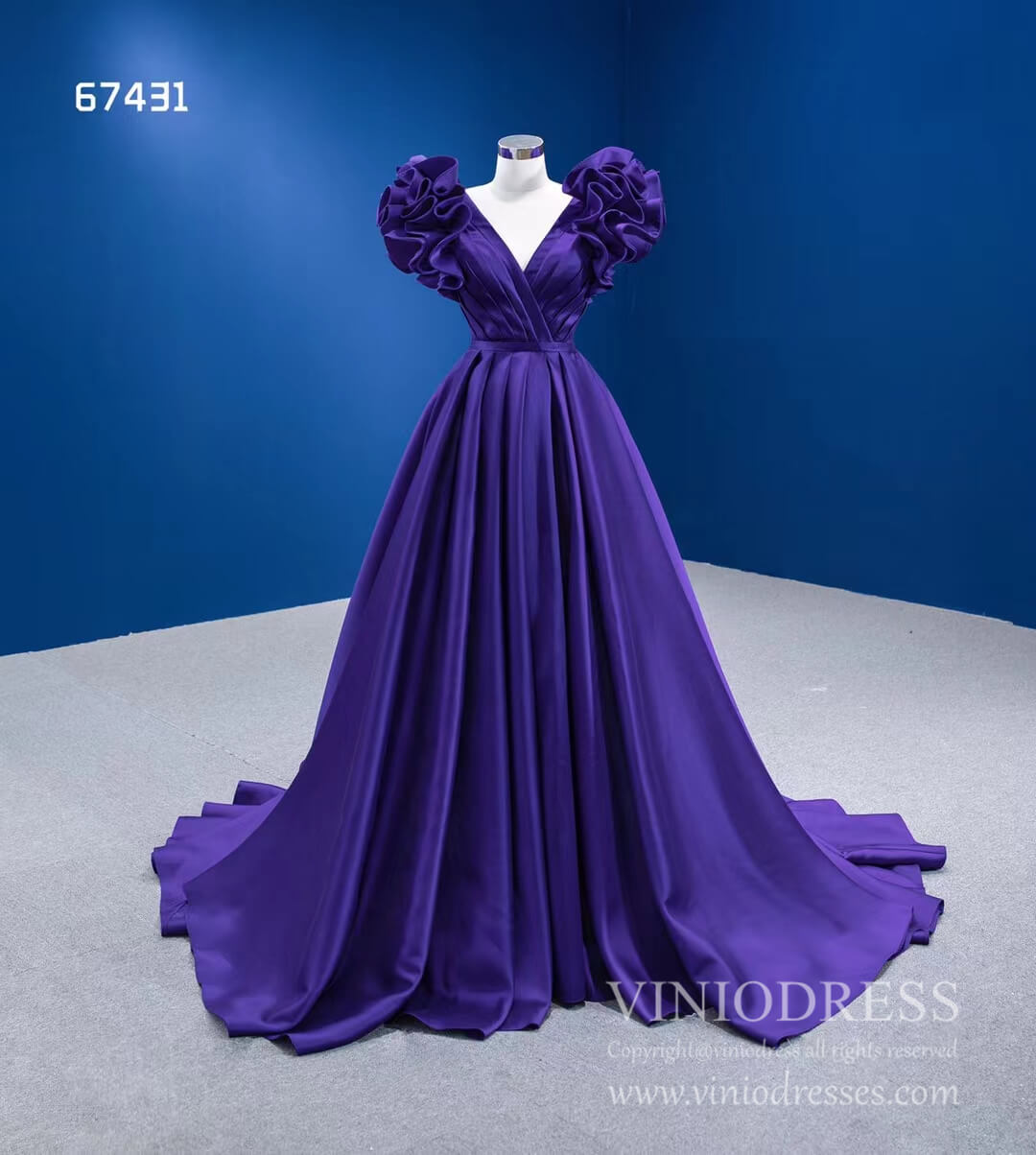 Blue Violet Satin Formal Gown Pageant with Slit 67431 viniodress
