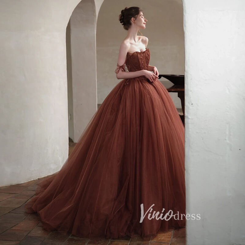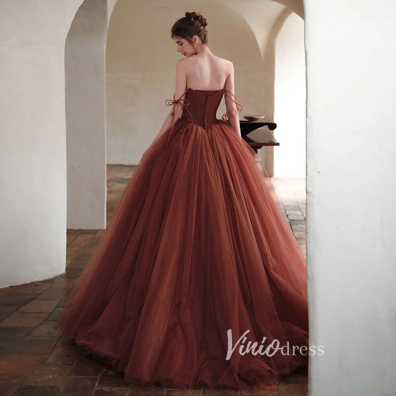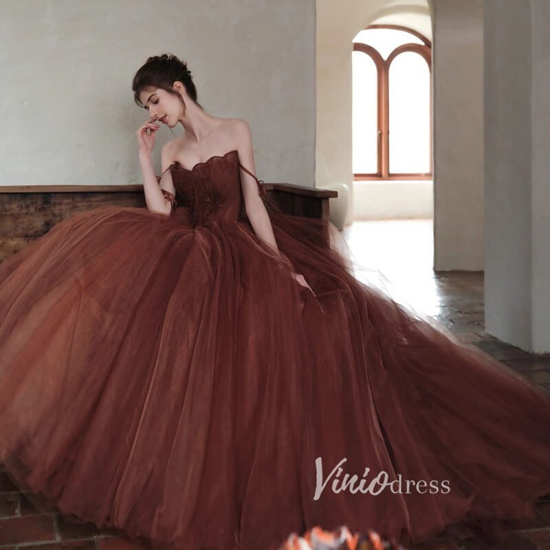 Brown Tulle Ball Gown Vintage Chocolate Quince Dress FD2788
