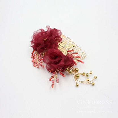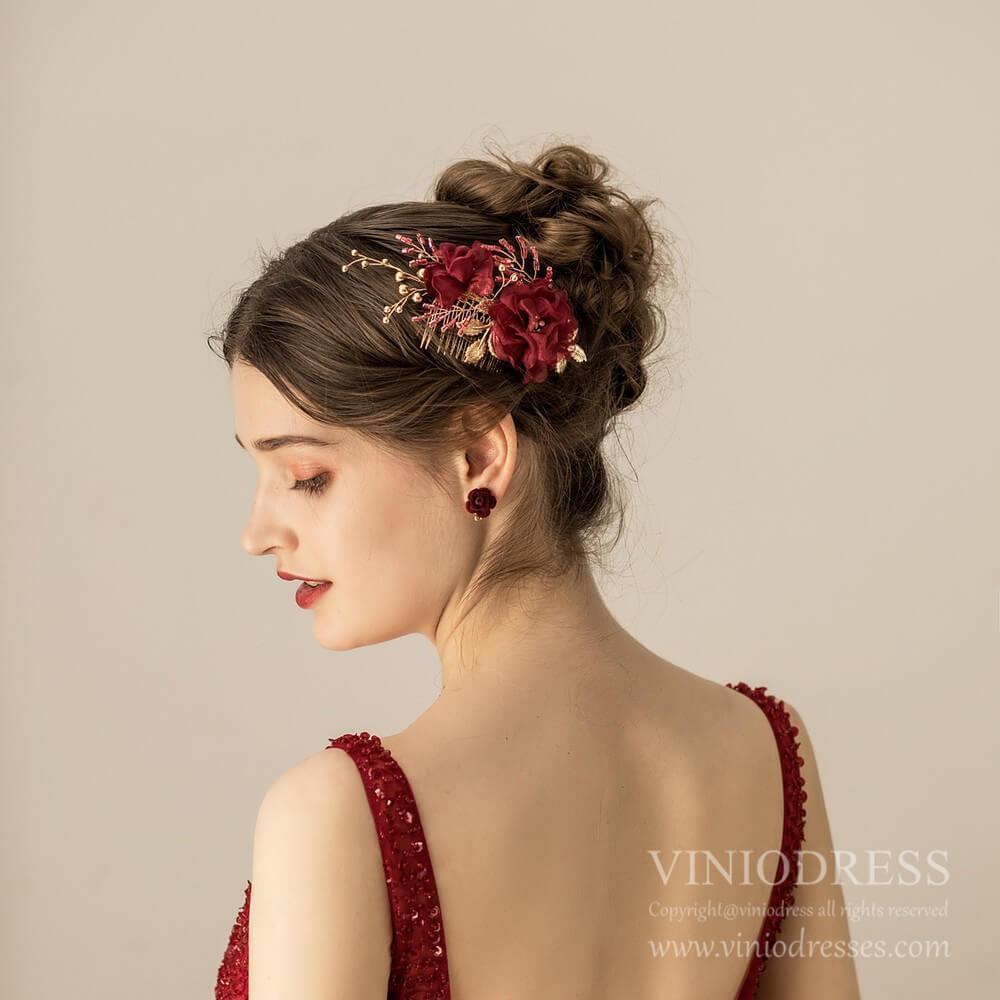 Burgundy 3D Floral Hair Combs AC1224