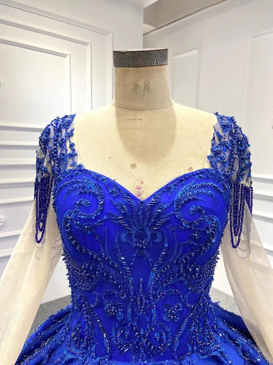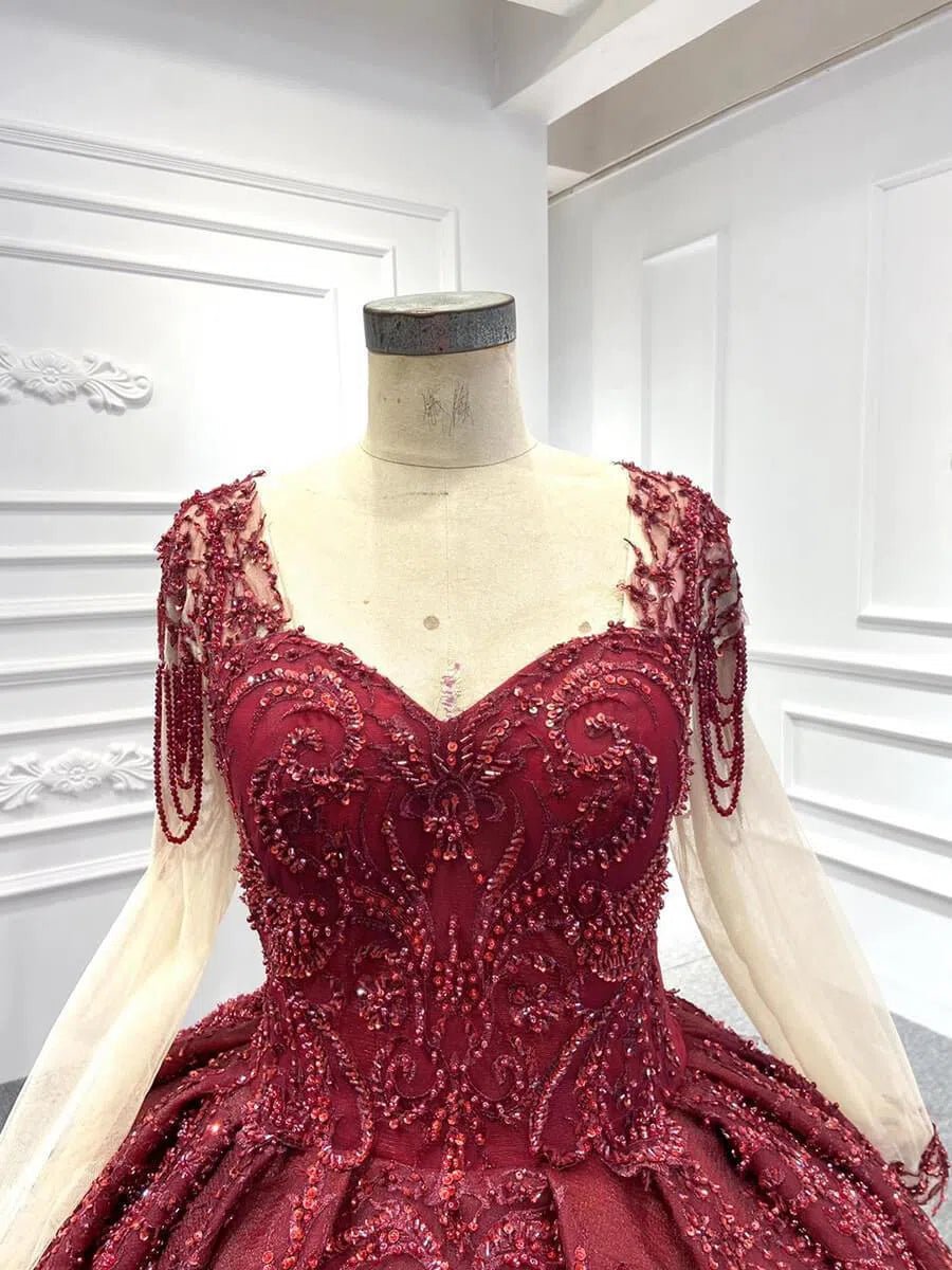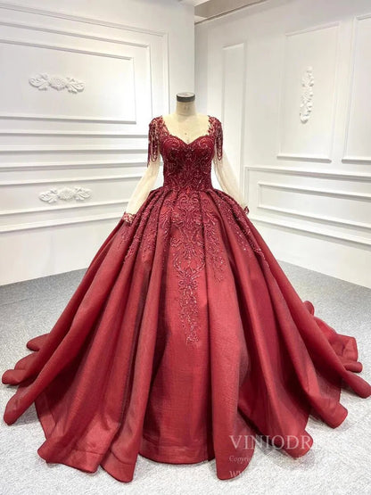 Burgundy Long Sleeve Princess Ball Gown Beaded Quinceanera Dresses viniodress