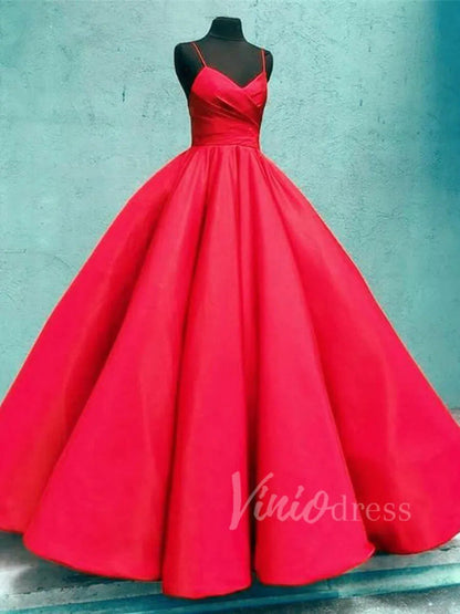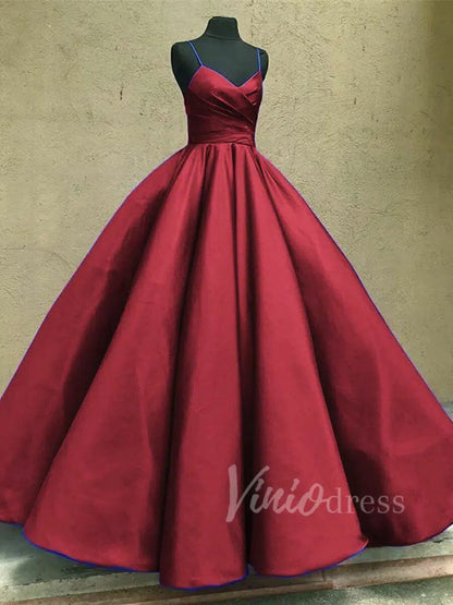 Burgundy Satin Ball Gown Prom Dresses with Straps FD1112