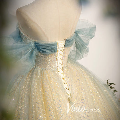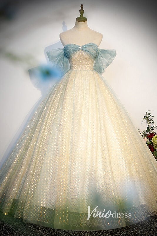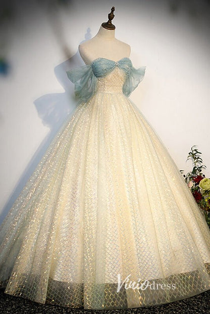 Champagne Sparkly Tulle Off the Shoulder Quinceanera Dress FD3539