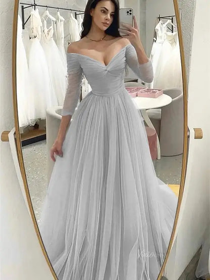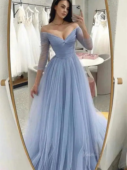 Step into timeless beauty and modern elegance with the FD5101 Off-the-Shoulder Pleated Tulle Prom Dress—where romance, sophistication, and style come together.