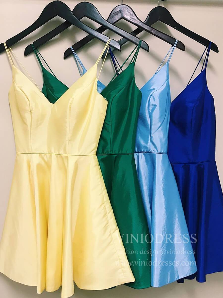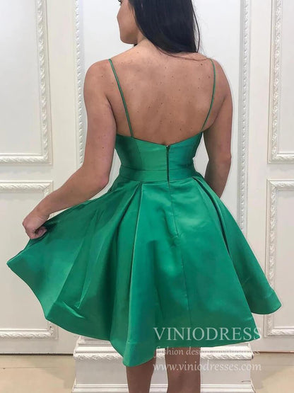 Simple Emerald Green Satin Homecoming Dresses with Pockets SD1290