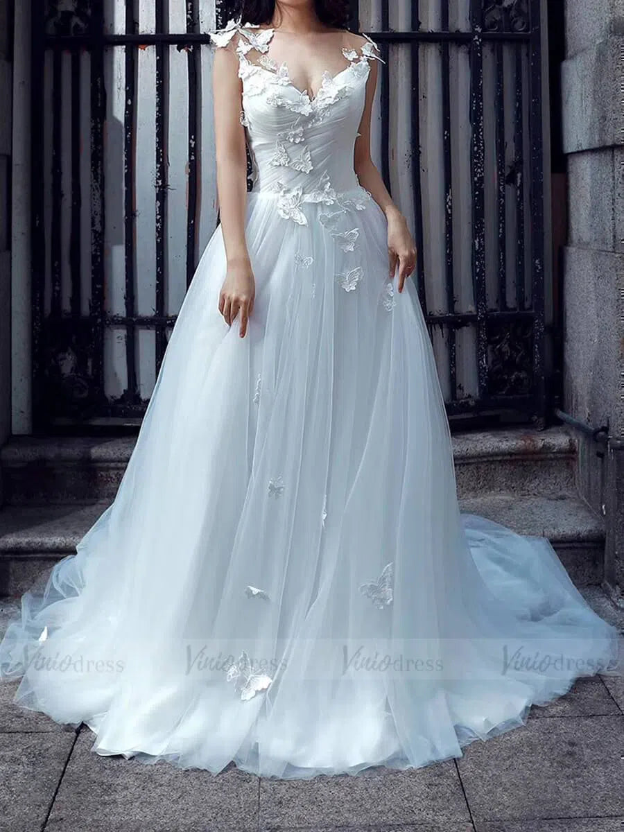 Step into a fairytale moment with this ethereal tulle ball gown wedding dress, designed with a romantic blend of softness, structure, and modern princess charm. The fitted sheer corset bodice shapes the waist beautifully with its exquisite draped tulle detailing, while the cascading off-shoulder draped sleeves add a dreamy, whimsical touch. Layers of light, airy tulle create a full, breathtaking skirt that glides gracefully into a refined chapel train, completing the gown’s magical silhouette. Feminine, elegant, and unforgettable, this gown is perfect for brides seeking a modern fairytale aesthetic with couture craftsmanship.