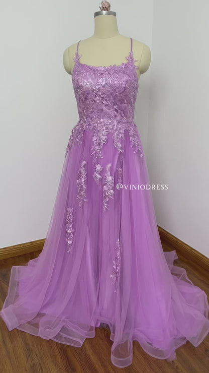 Pink Lace Appliqued Long Prom Dress with Slit Spaghetti Strap FD1739