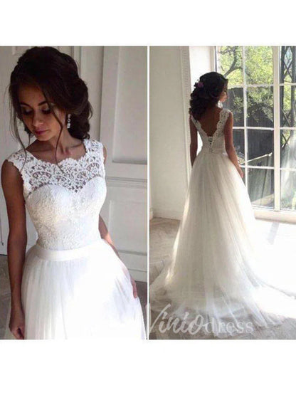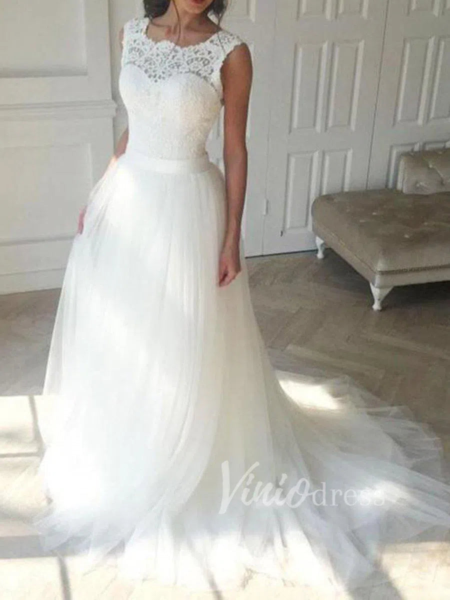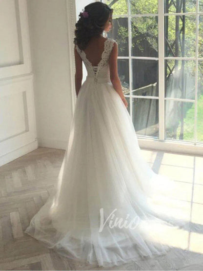 Classic Tulle Beach Wedding Dresses with Lace Bodice VW1234