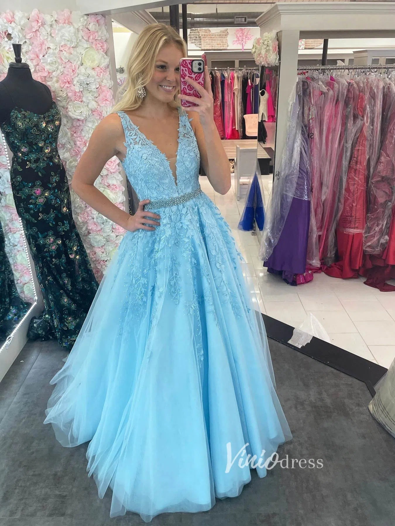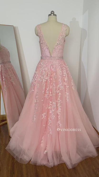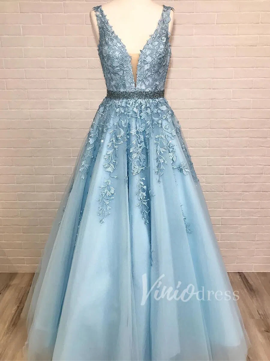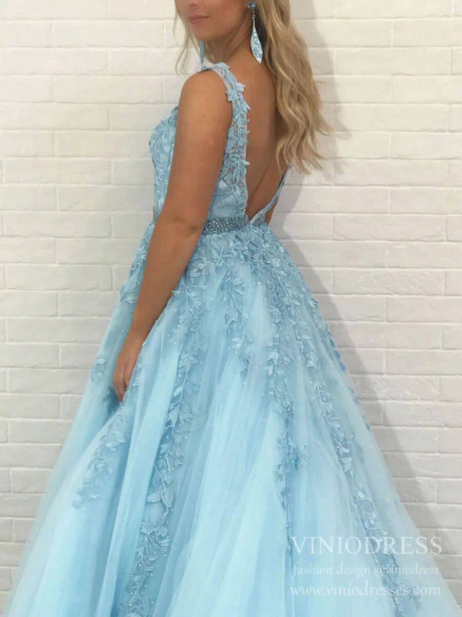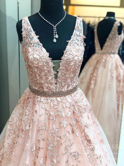 A-line V-neck Black Lace Prom Dresses Backless FD1265V