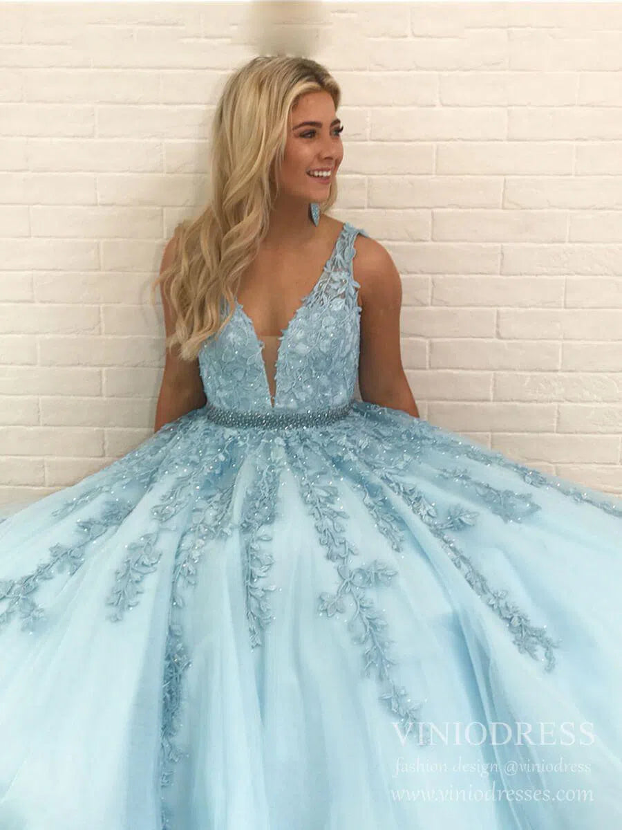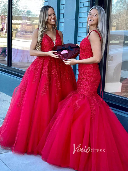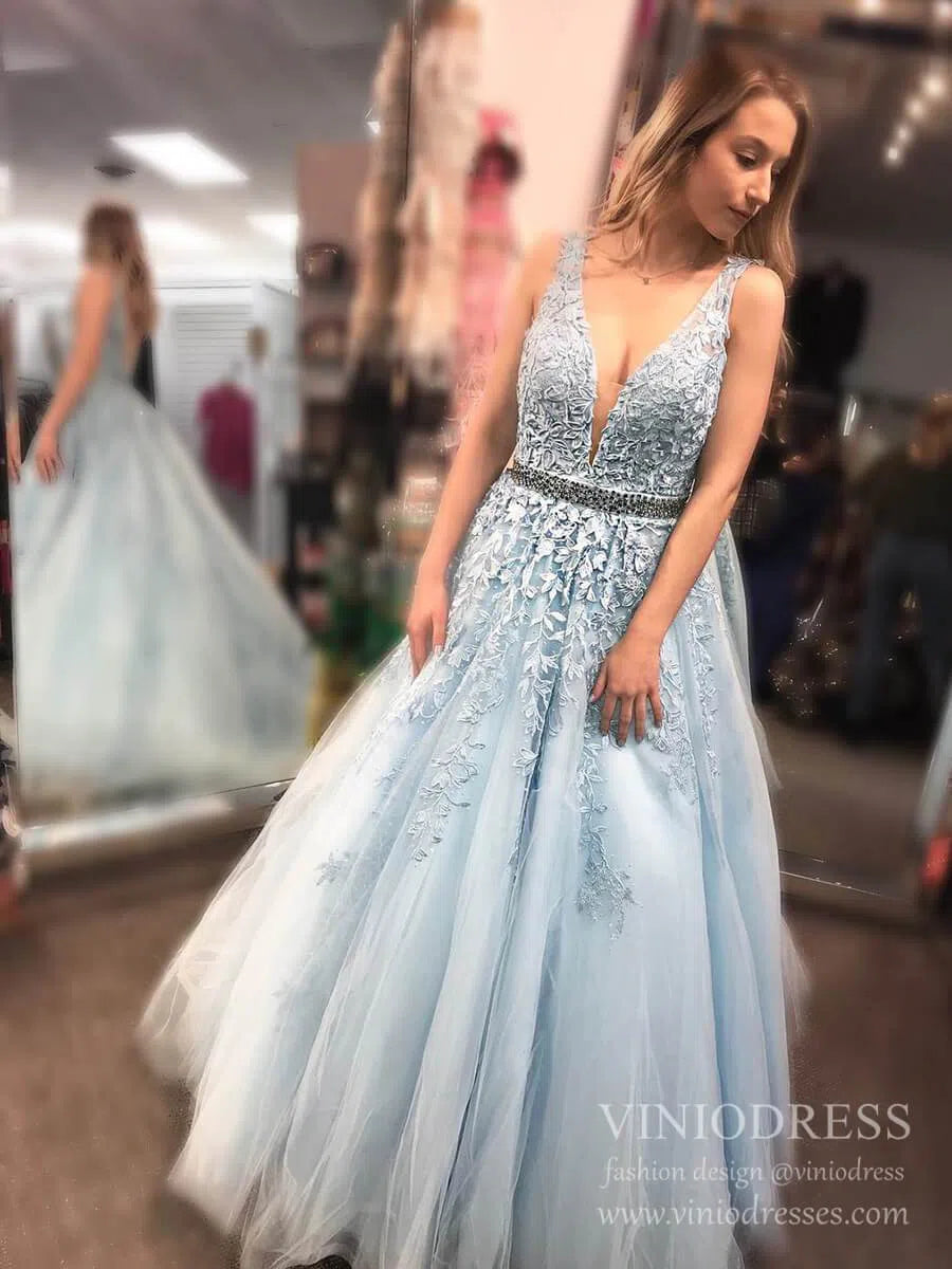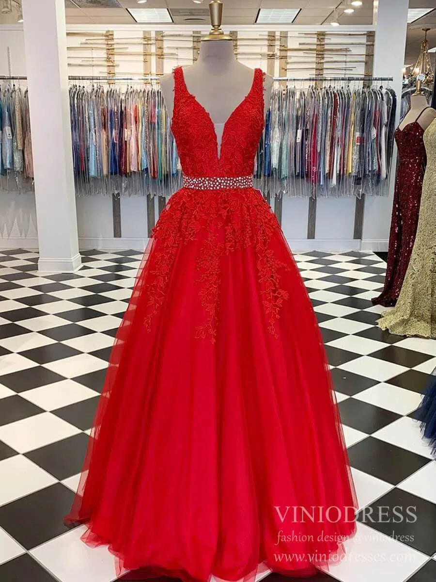 A-line V-neck Black Lace Prom Dresses Backless FD1265V