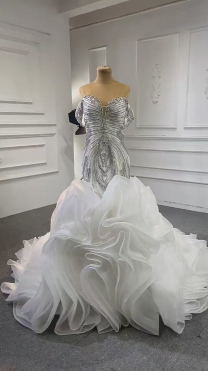 Haute couture mermaid wedding dress with ruffled tulle bottom.