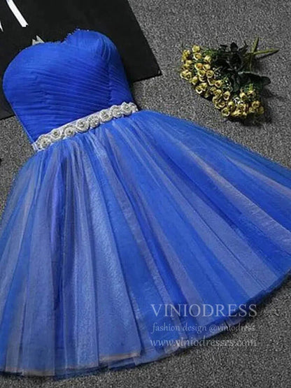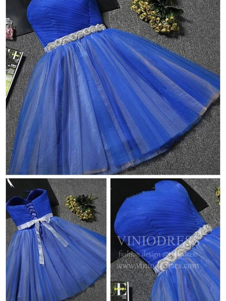 Cute Royal Blue Strapless Homecoming Dresses with Sash SD1001