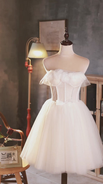 Cute Strapless Graduation Dress Tulle Homecoming Dresses SD1455