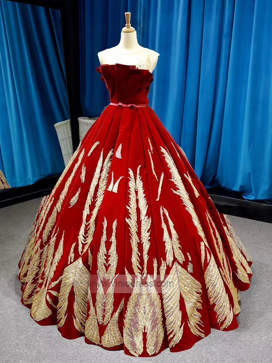 This couture-style ball gown features unique built-in petal petticoats design that keeps the skirt as puffy and voluminous as shown in the pictures — meaning no extra petticoat is needed. The gown finishes with a soft sweep train, adding grace and elegance to every step.