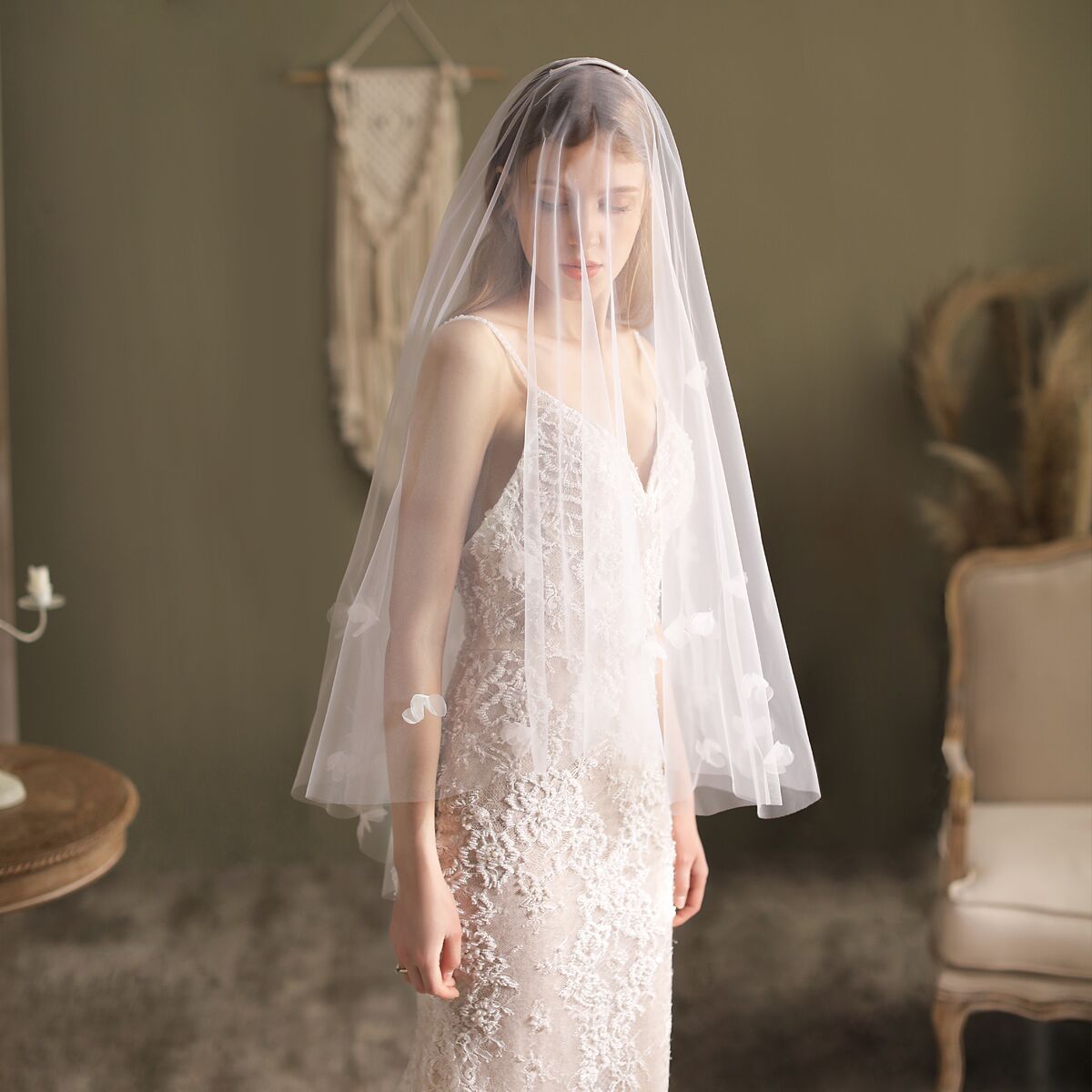 Floral Bridal Veil with Blusher