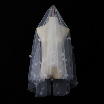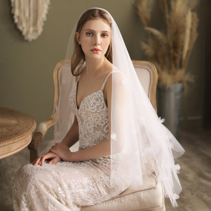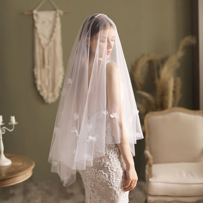 Floral Bridal Veil with Blusher Hip Length Veil
