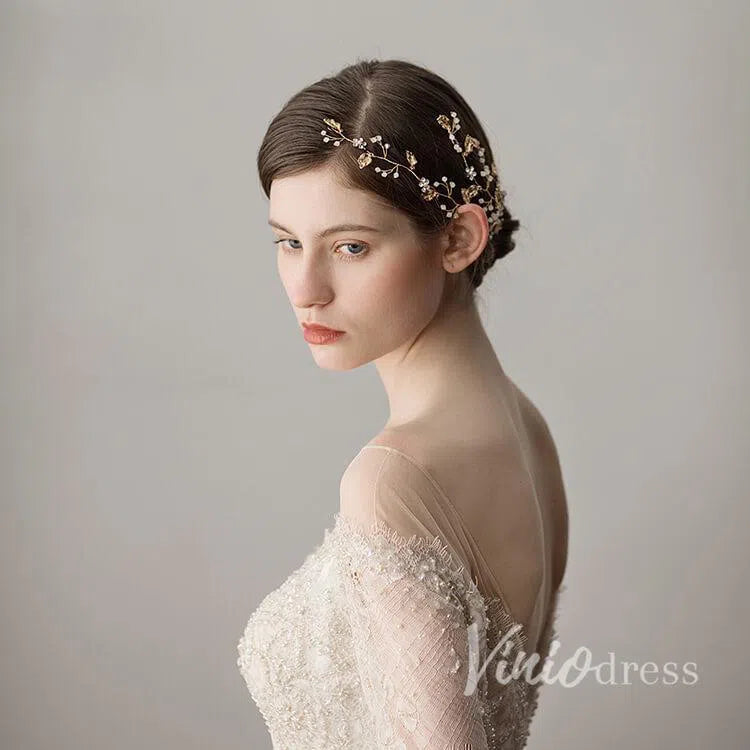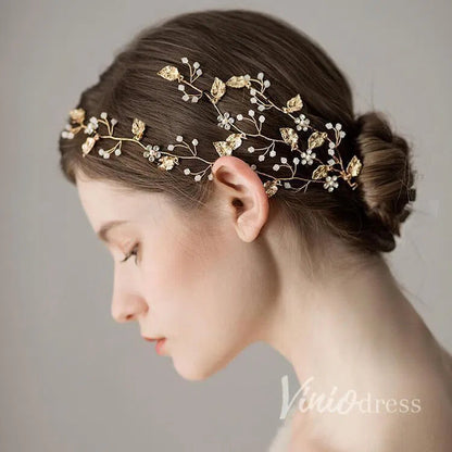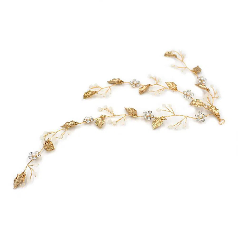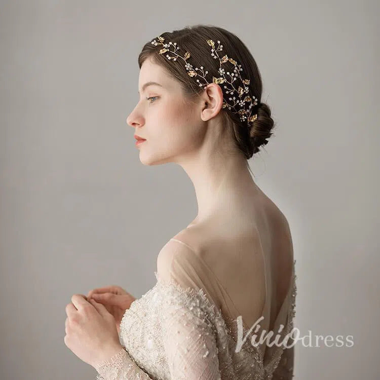 Gold Leaves Crystal Petals Bridal Headband Viniodress ACC1106