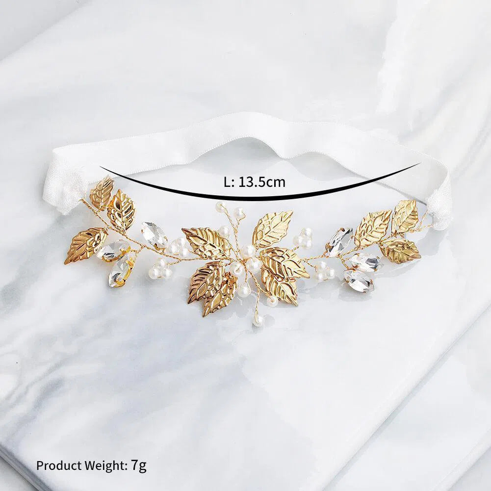Gold Metal Leaf Wedding Garter with Pearls and Crystals AC1035