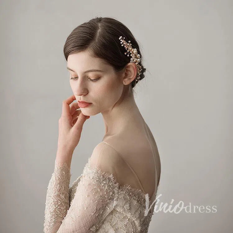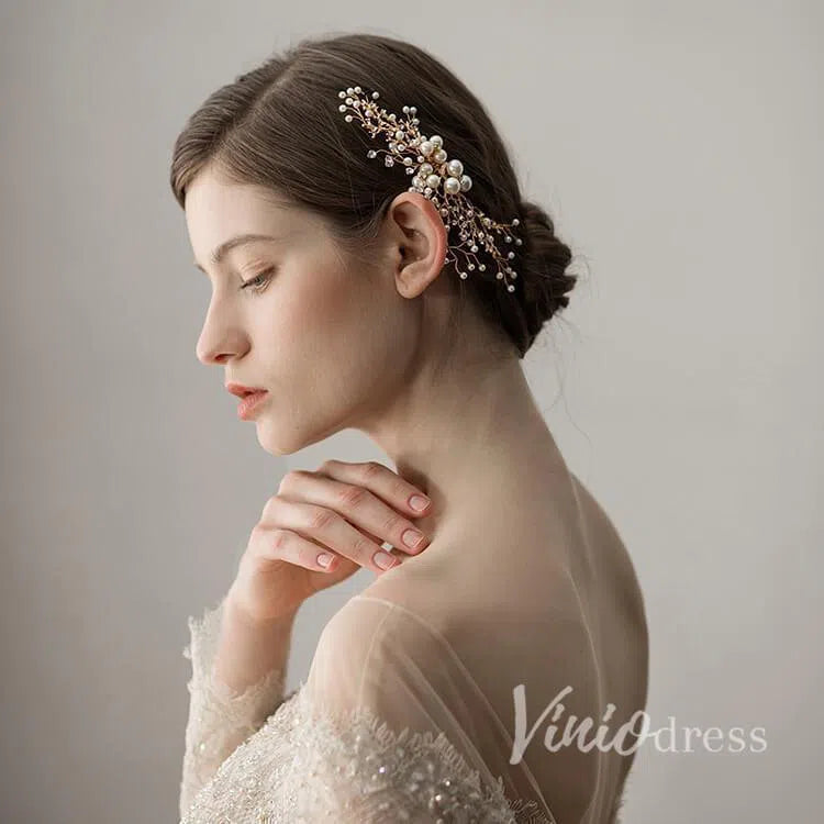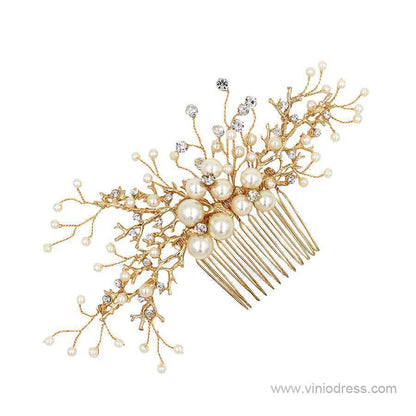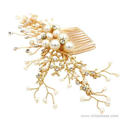 Gold Sprig Bridal Comb with Crystals and Pearls Viniodress ACC1108