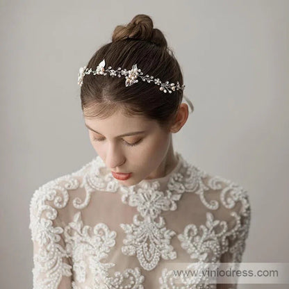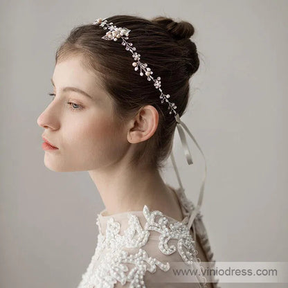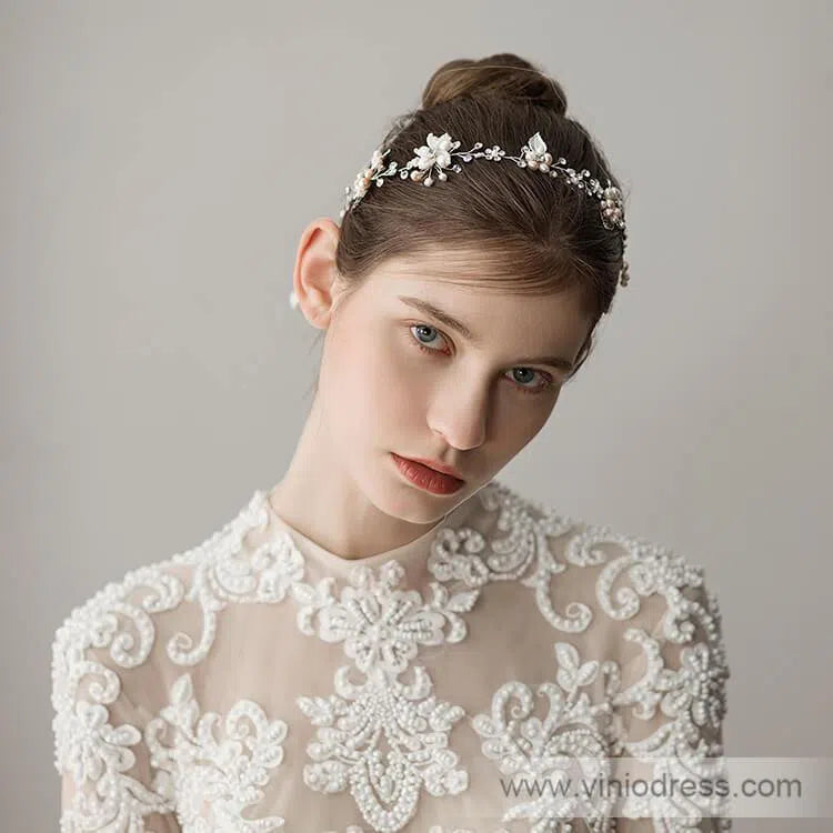Hand-wired Crystal Petals Bridal Headband with Tieback and Pearl ACC1113