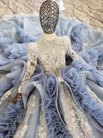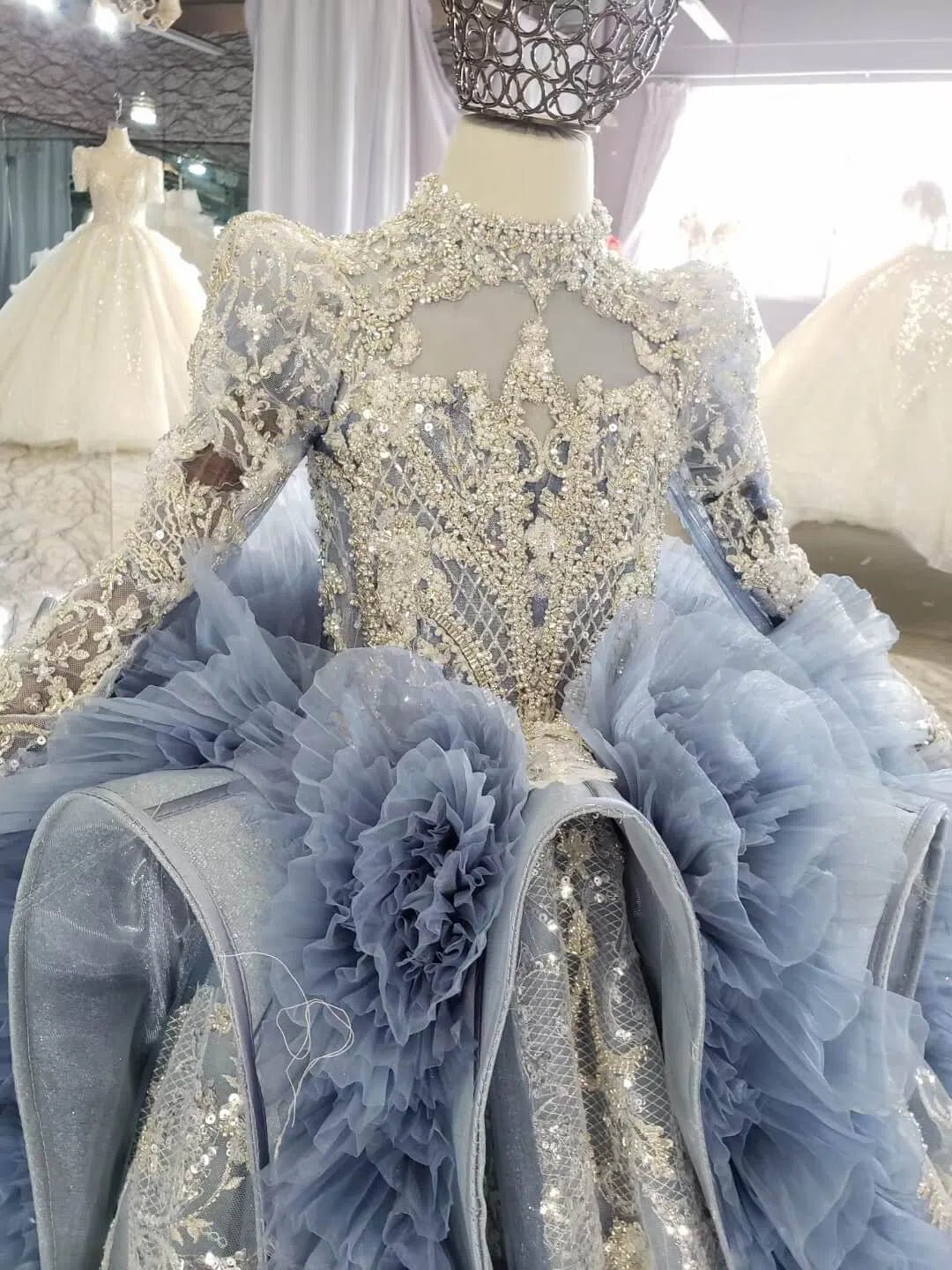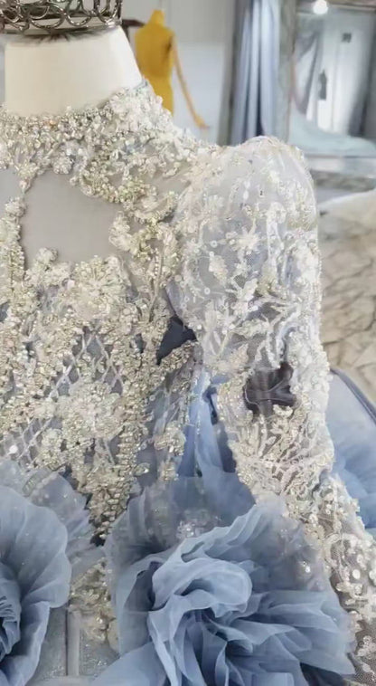 Haute Couture Dusty Blue Ball Gown for Kids KD1031